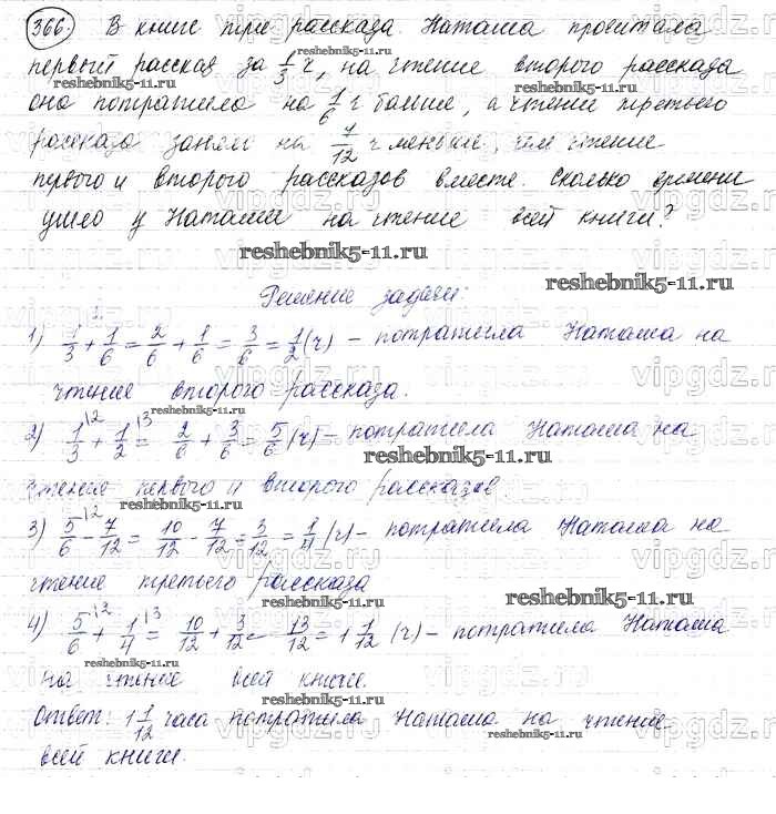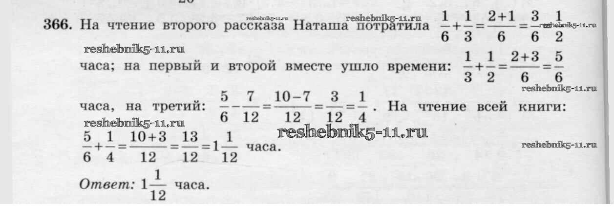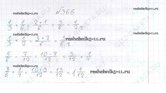 Готовая домашняя работа с ответами по Математике за 6 класс Виленкин, Жохов, Чесноков, Шварцбурд Учебник Мнемозина 2014 ФГОС - §2. Сложение и вычитание дробей с разными знаменателями 366
