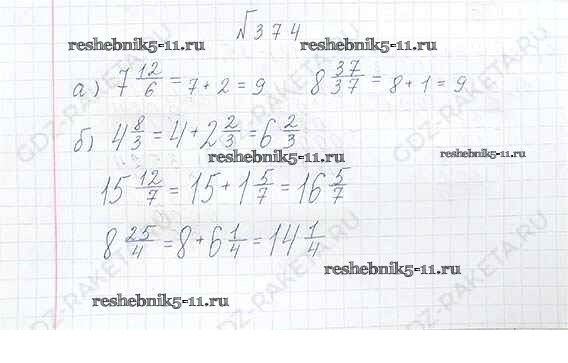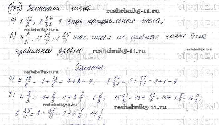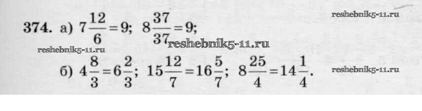 Готовая домашняя работа с ответами по Математике за 6 класс Виленкин, Жохов, Чесноков, Шварцбурд Учебник Мнемозина 2014 ФГОС - §2. Сложение и вычитание дробей с разными знаменателями 374