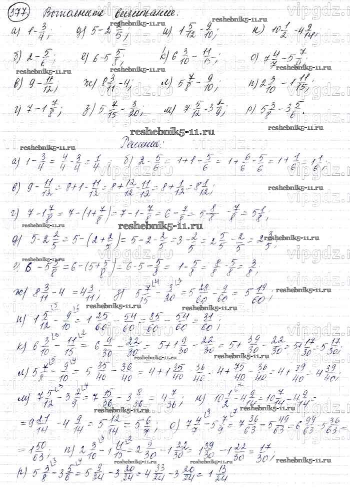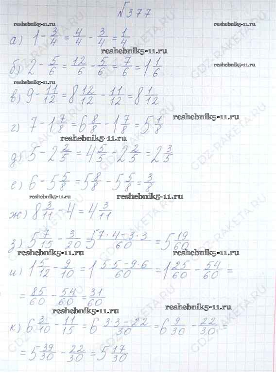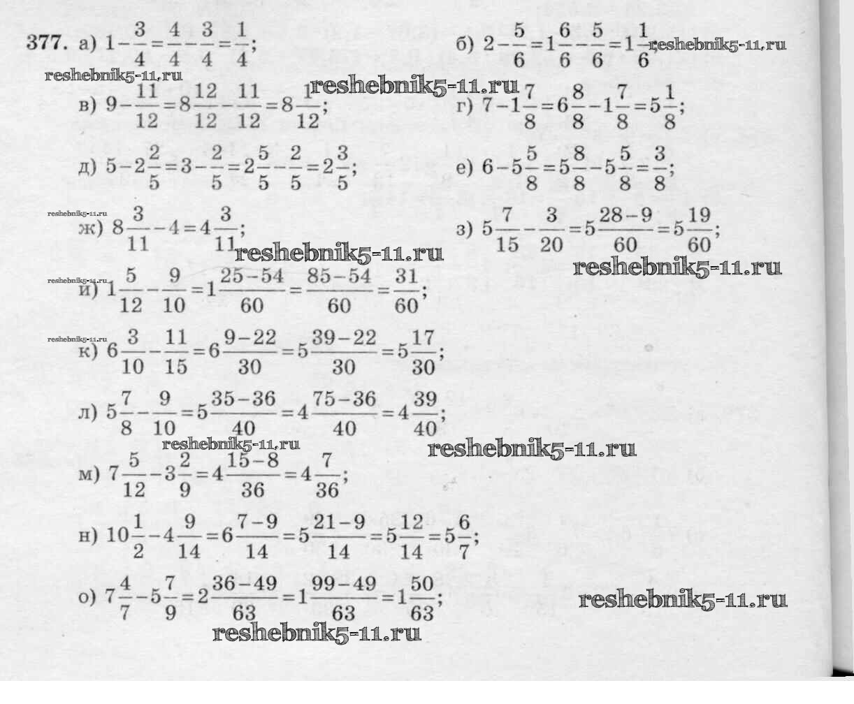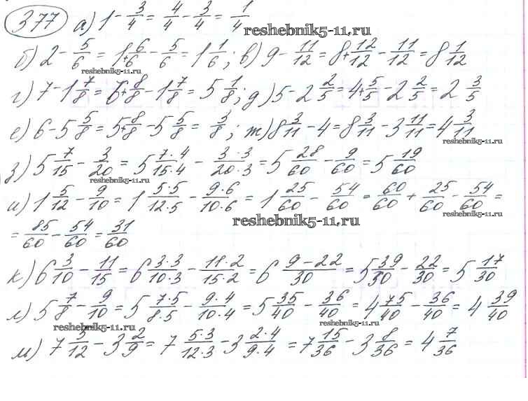 Готовая домашняя работа с ответами по Математике за 6 класс Виленкин, Жохов, Чесноков, Шварцбурд Учебник Мнемозина 2014 ФГОС - §2. Сложение и вычитание дробей с разными знаменателями 377