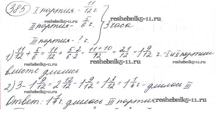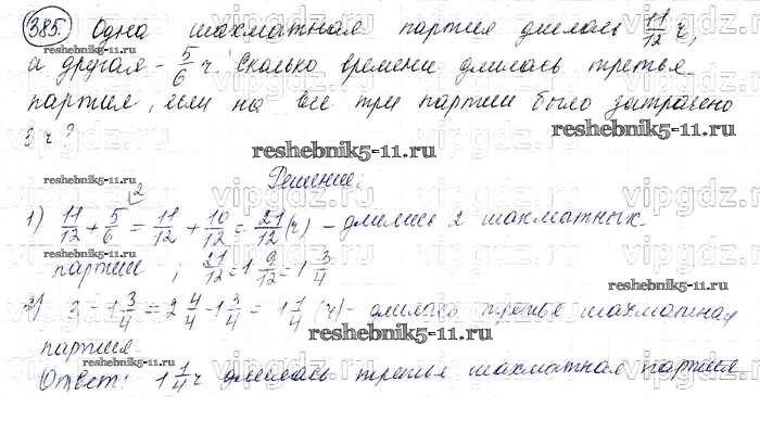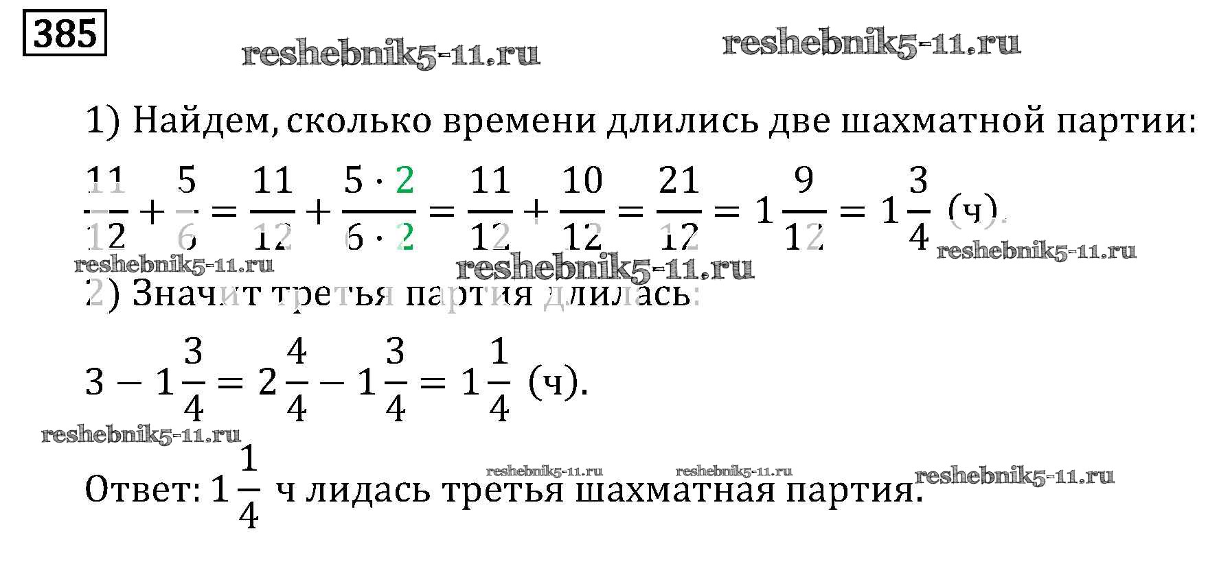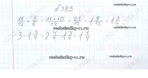 Готовая домашняя работа с ответами по Математике за 6 класс Виленкин, Жохов, Чесноков, Шварцбурд Учебник Мнемозина 2014 ФГОС - §2. Сложение и вычитание дробей с разными знаменателями 385