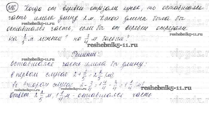 Готовая домашняя работа с ответами по Математике за 6 класс Виленкин, Жохов, Чесноков, Шварцбурд Учебник Мнемозина 2014 ФГОС - §2. Сложение и вычитание дробей с разными знаменателями 386