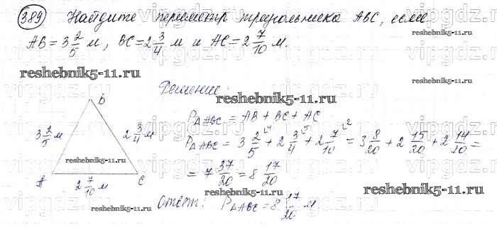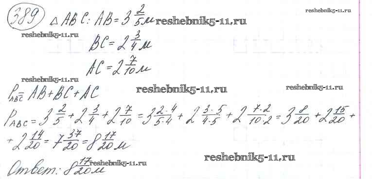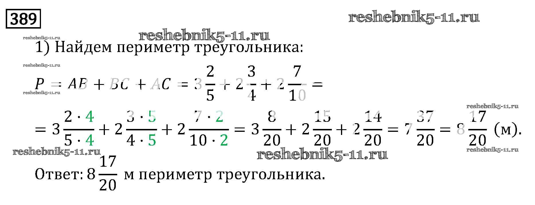 Готовая домашняя работа с ответами по Математике за 6 класс Виленкин, Жохов, Чесноков, Шварцбурд Учебник Мнемозина 2014 ФГОС - §2. Сложение и вычитание дробей с разными знаменателями 389