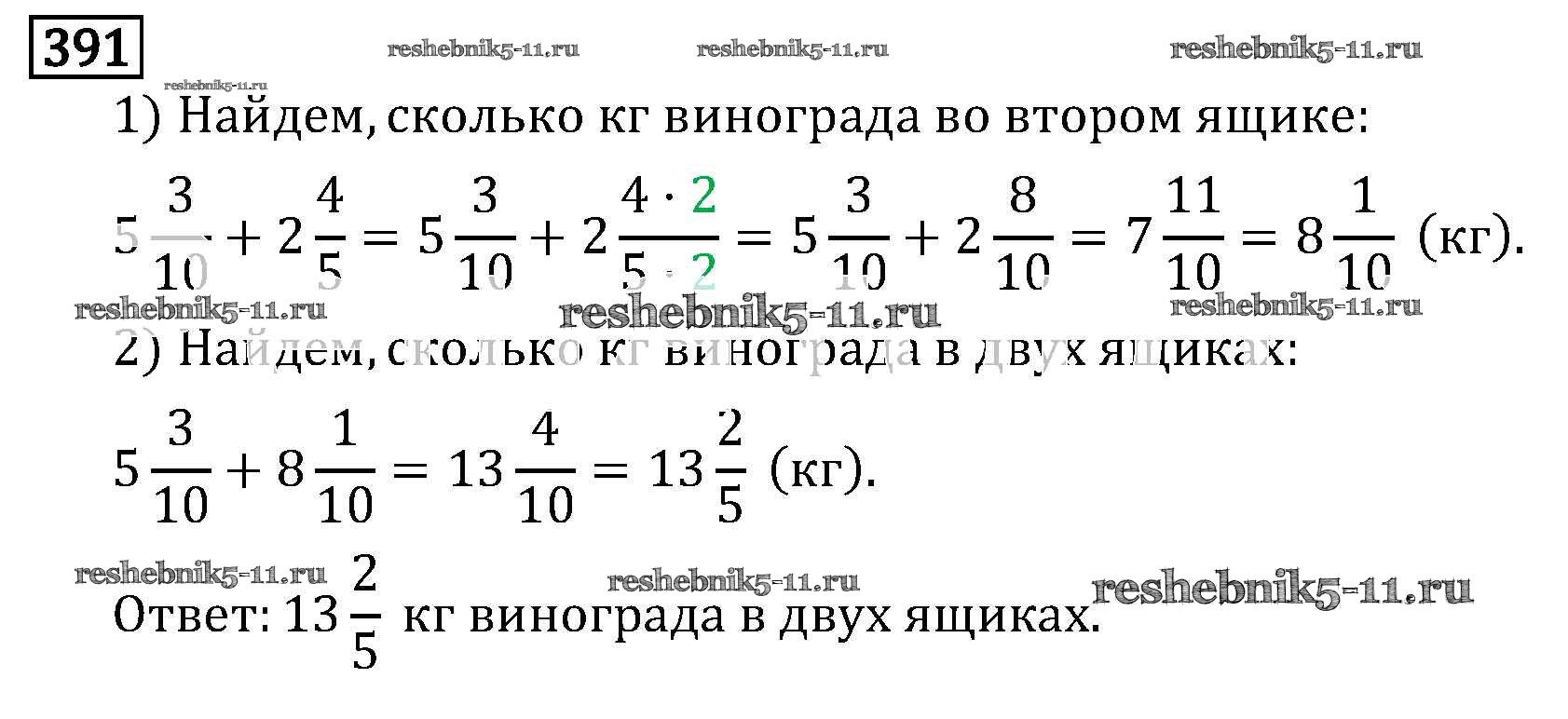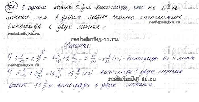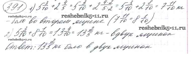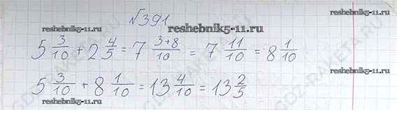 Готовая домашняя работа с ответами по Математике за 6 класс Виленкин, Жохов, Чесноков, Шварцбурд Учебник Мнемозина 2014 ФГОС - §2. Сложение и вычитание дробей с разными знаменателями 391