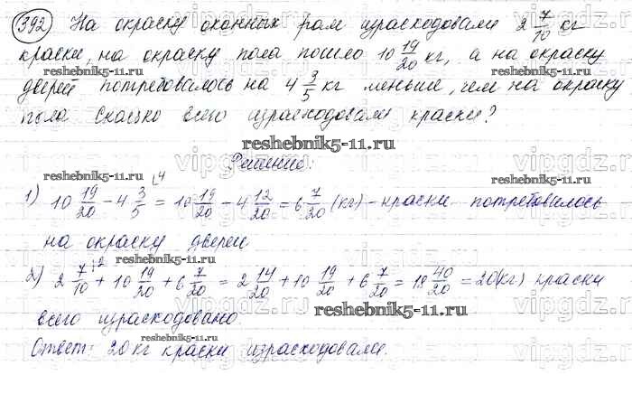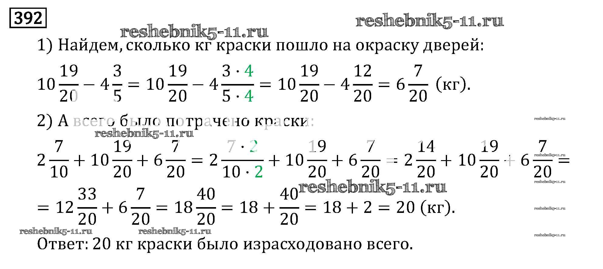 Готовая домашняя работа с ответами по Математике за 6 класс Виленкин, Жохов, Чесноков, Шварцбурд Учебник Мнемозина 2014 ФГОС - §2. Сложение и вычитание дробей с разными знаменателями 392