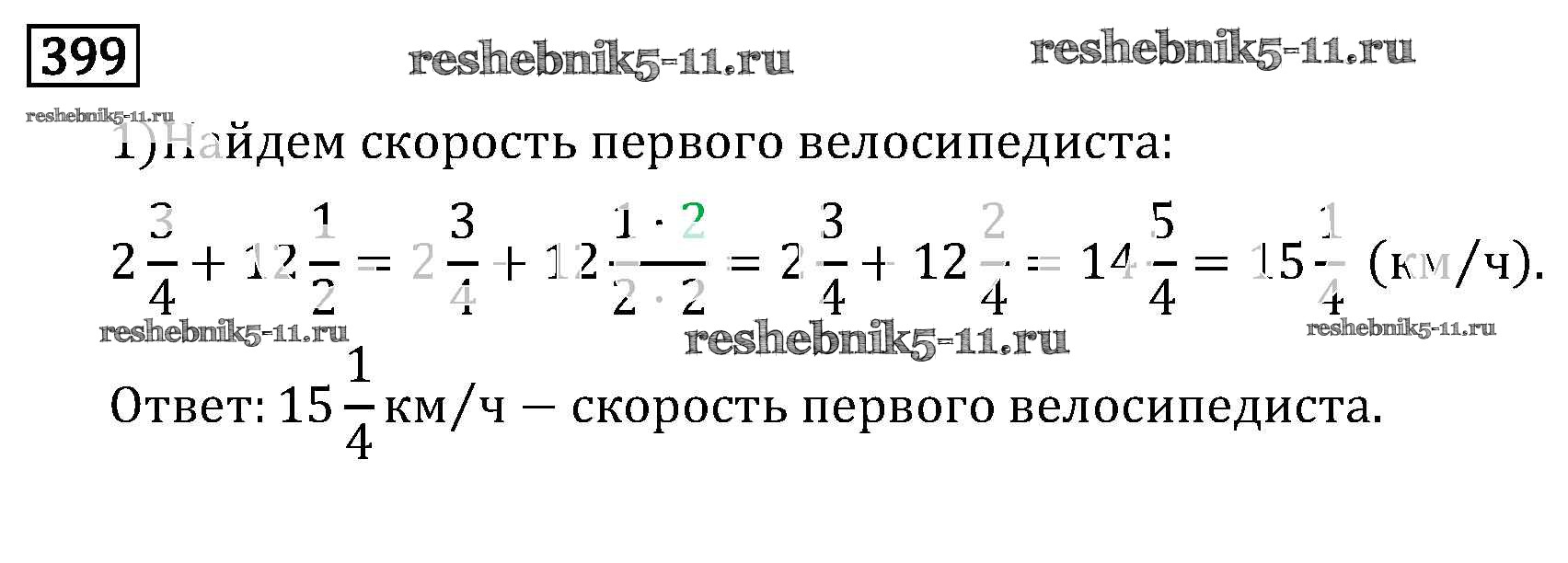 Готовая домашняя работа с ответами по Математике за 6 класс Виленкин, Жохов, Чесноков, Шварцбурд Учебник Мнемозина 2014 ФГОС - §2. Сложение и вычитание дробей с разными знаменателями 399