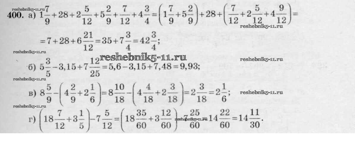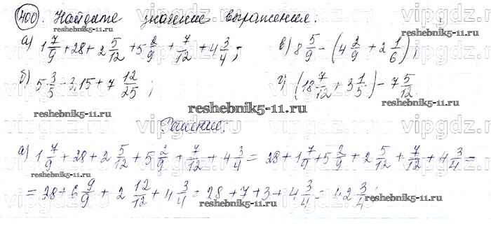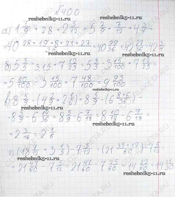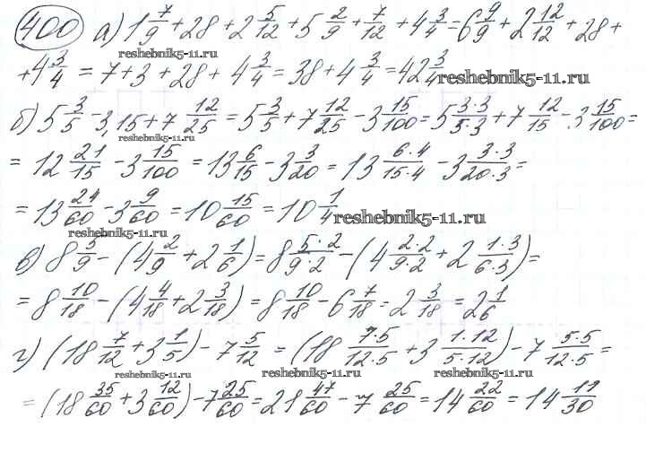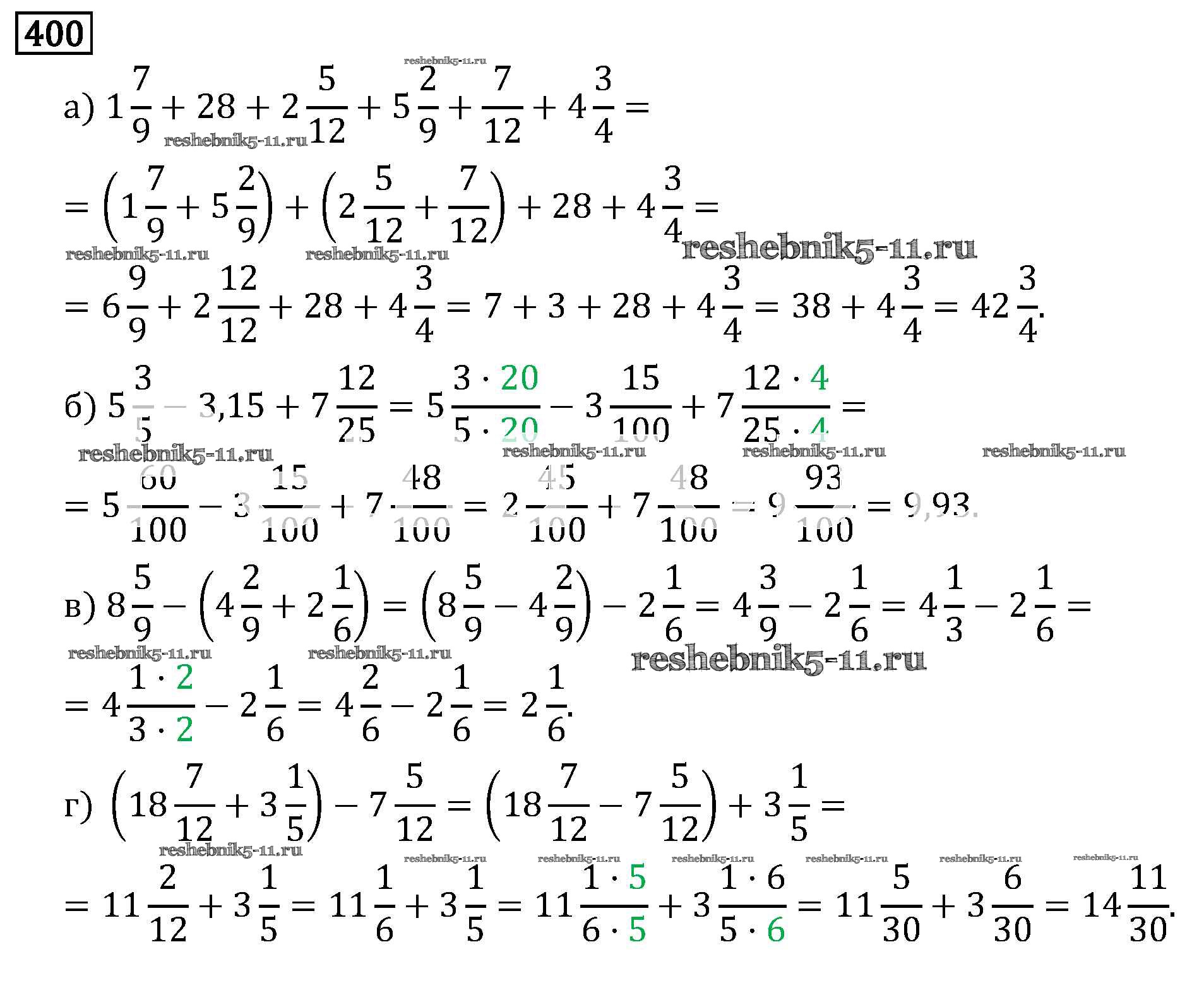 Готовая домашняя работа с ответами по Математике за 6 класс Виленкин, Жохов, Чесноков, Шварцбурд Учебник Мнемозина 2014 ФГОС - §2. Сложение и вычитание дробей с разными знаменателями 400