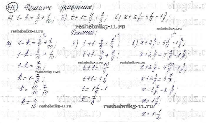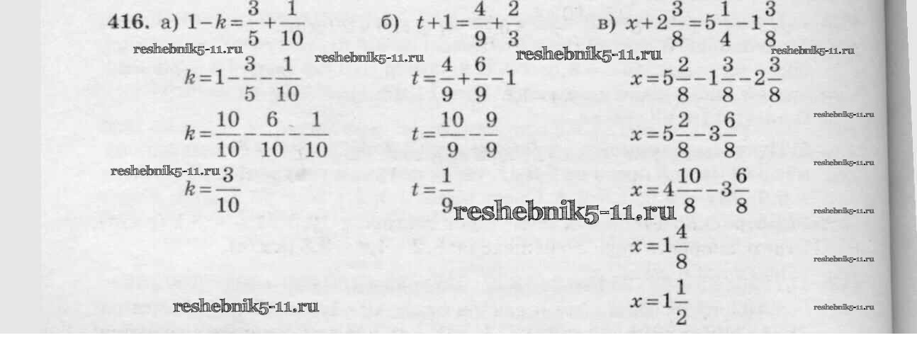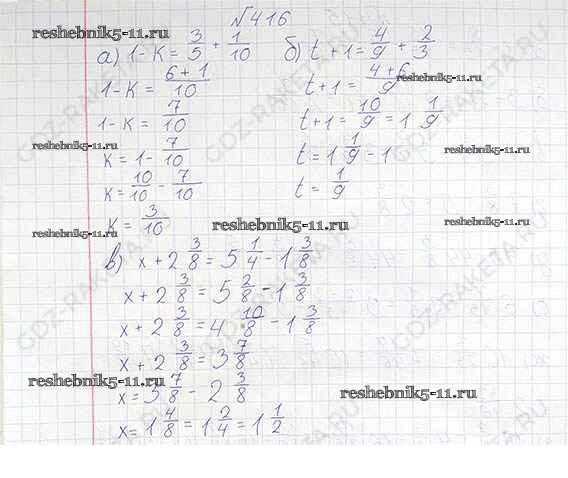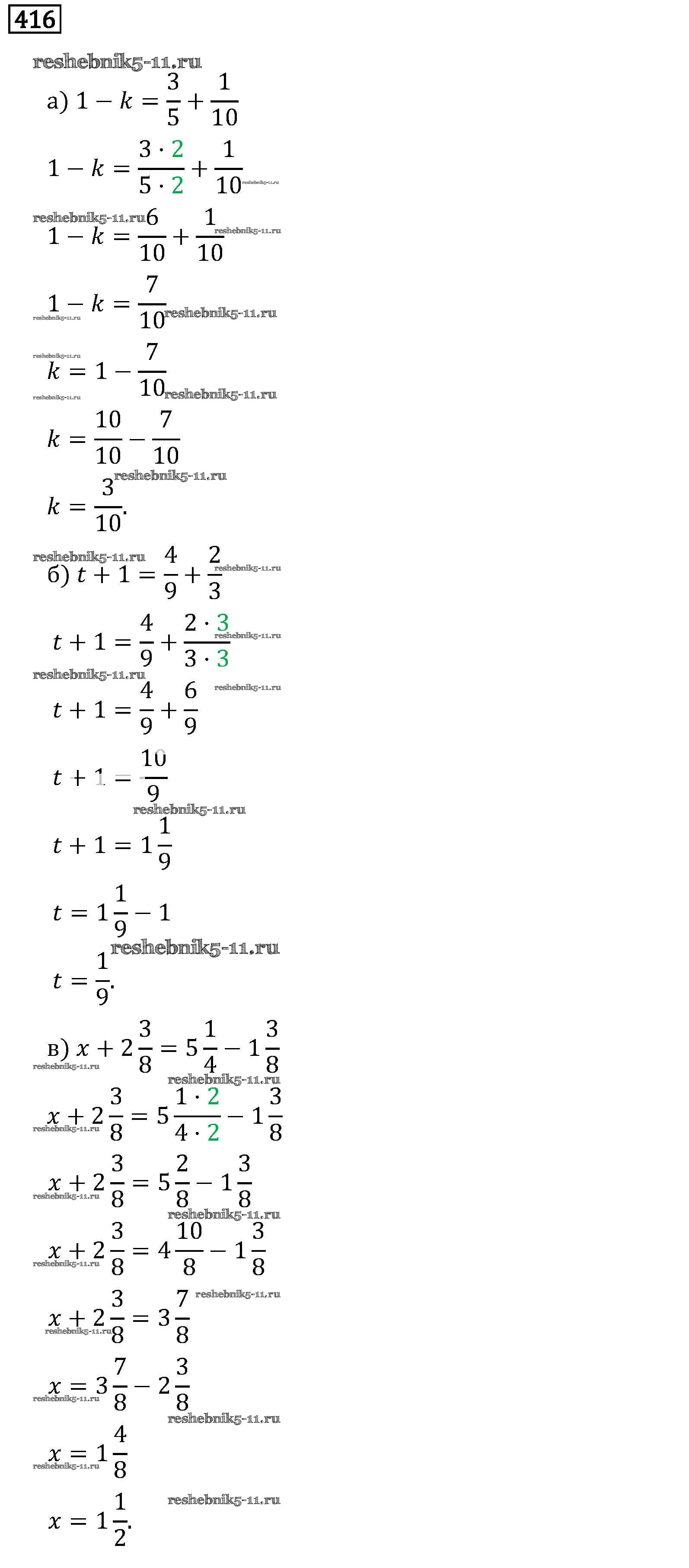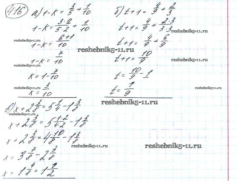 Готовая домашняя работа с ответами по Математике за 6 класс Виленкин, Жохов, Чесноков, Шварцбурд Учебник Мнемозина 2014 ФГОС - §2. Сложение и вычитание дробей с разными знаменателями 416