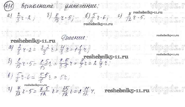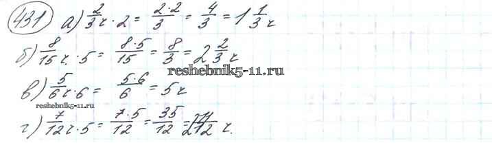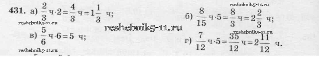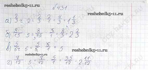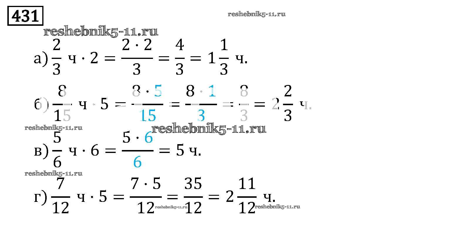 Готовая домашняя работа с ответами по Математике за 6 класс Виленкин, Жохов, Чесноков, Шварцбурд Учебник Мнемозина 2014 ФГОС - §3. Умножение и деление обыкновенных дробей 431