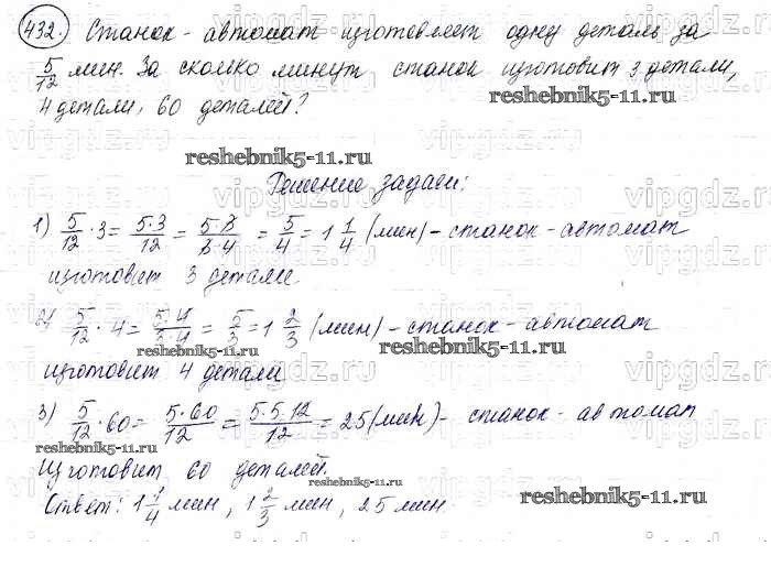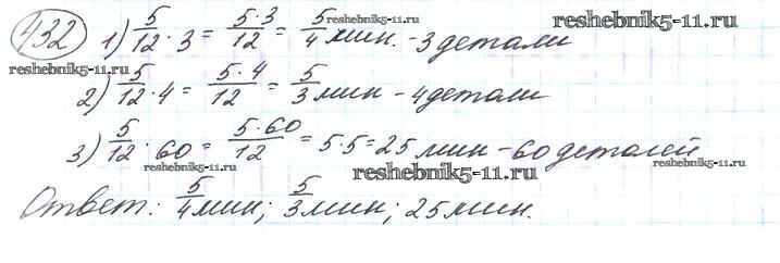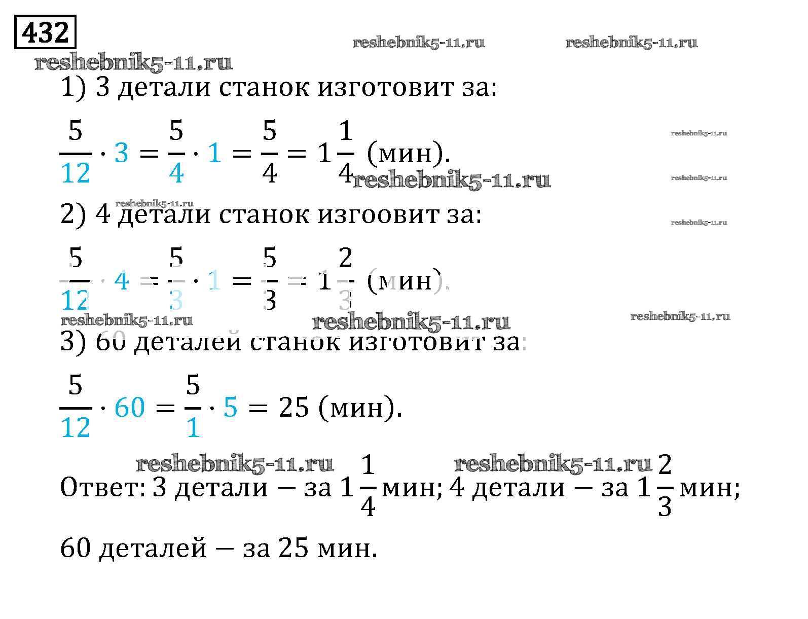 Готовая домашняя работа с ответами по Математике за 6 класс Виленкин, Жохов, Чесноков, Шварцбурд Учебник Мнемозина 2014 ФГОС - §3. Умножение и деление обыкновенных дробей 432
