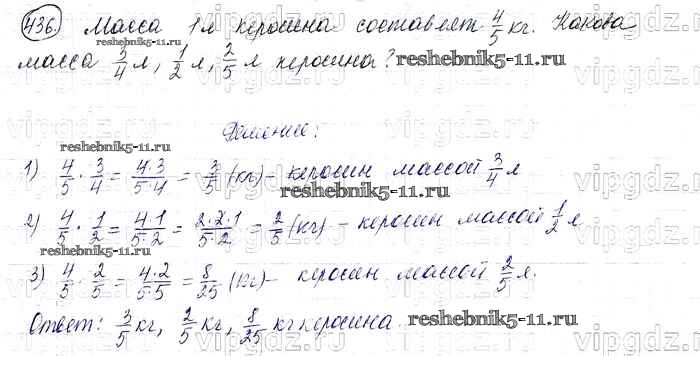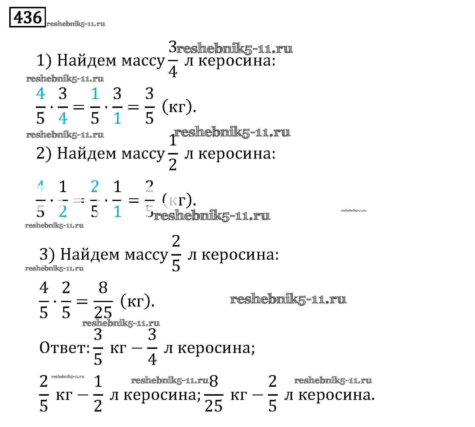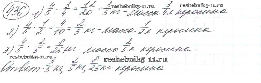 Готовая домашняя работа с ответами по Математике за 6 класс Виленкин, Жохов, Чесноков, Шварцбурд Учебник Мнемозина 2014 ФГОС - §3. Умножение и деление обыкновенных дробей 436