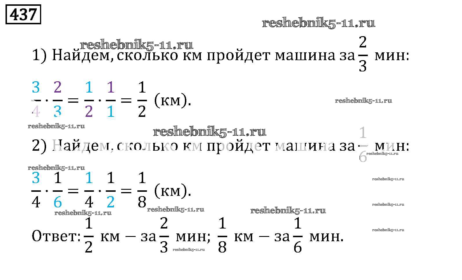 Готовая домашняя работа с ответами по Математике за 6 класс Виленкин, Жохов, Чесноков, Шварцбурд Учебник Мнемозина 2014 ФГОС - §3. Умножение и деление обыкновенных дробей 437