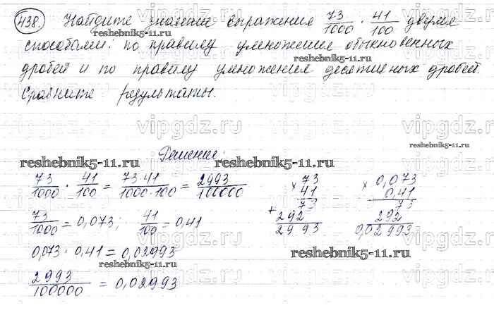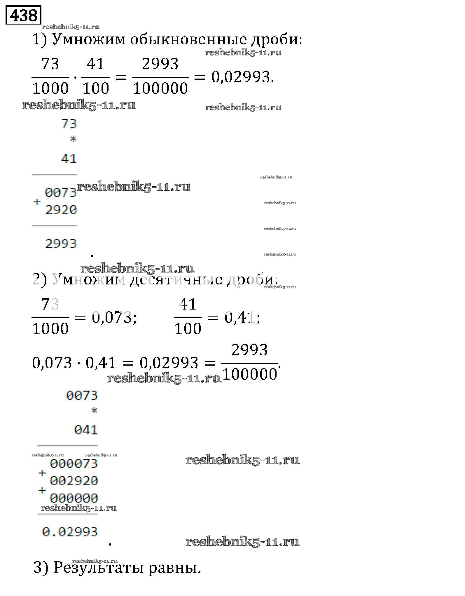 Готовая домашняя работа с ответами по Математике за 6 класс Виленкин, Жохов, Чесноков, Шварцбурд Учебник Мнемозина 2014 ФГОС - §3. Умножение и деление обыкновенных дробей 438