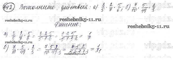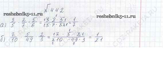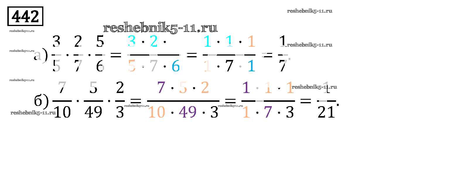 Готовая домашняя работа с ответами по Математике за 6 класс Виленкин, Жохов, Чесноков, Шварцбурд Учебник Мнемозина 2014 ФГОС - §3. Умножение и деление обыкновенных дробей 442