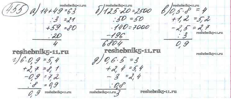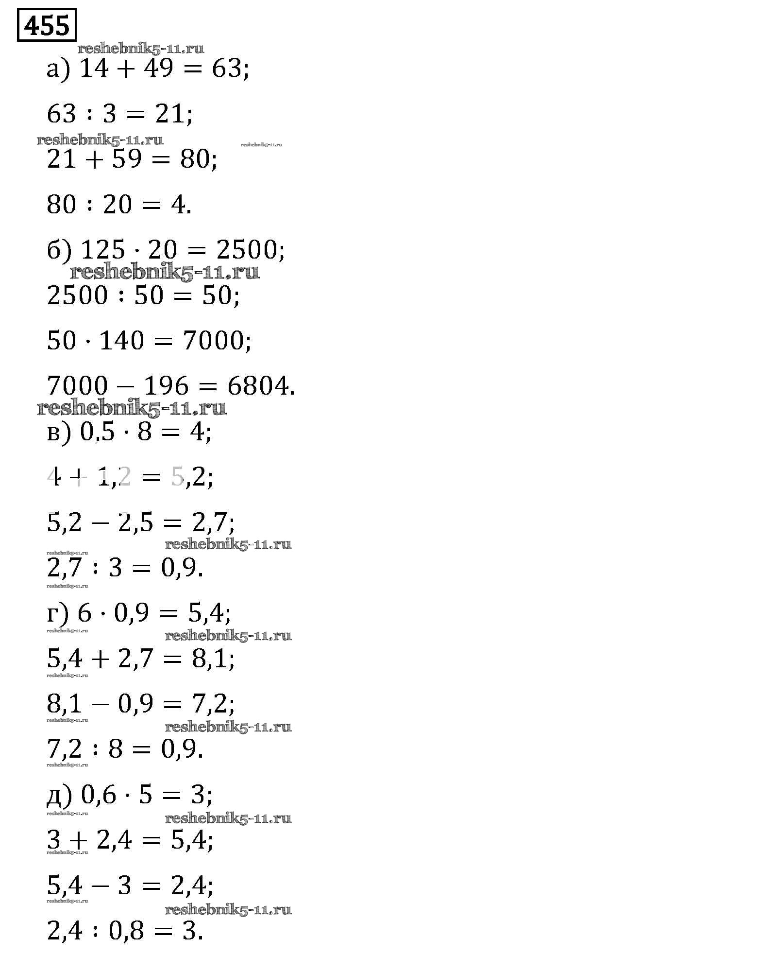 Готовая домашняя работа с ответами по Математике за 6 класс Виленкин, Жохов, Чесноков, Шварцбурд Учебник Мнемозина 2014 ФГОС - §3. Умножение и деление обыкновенных дробей 455