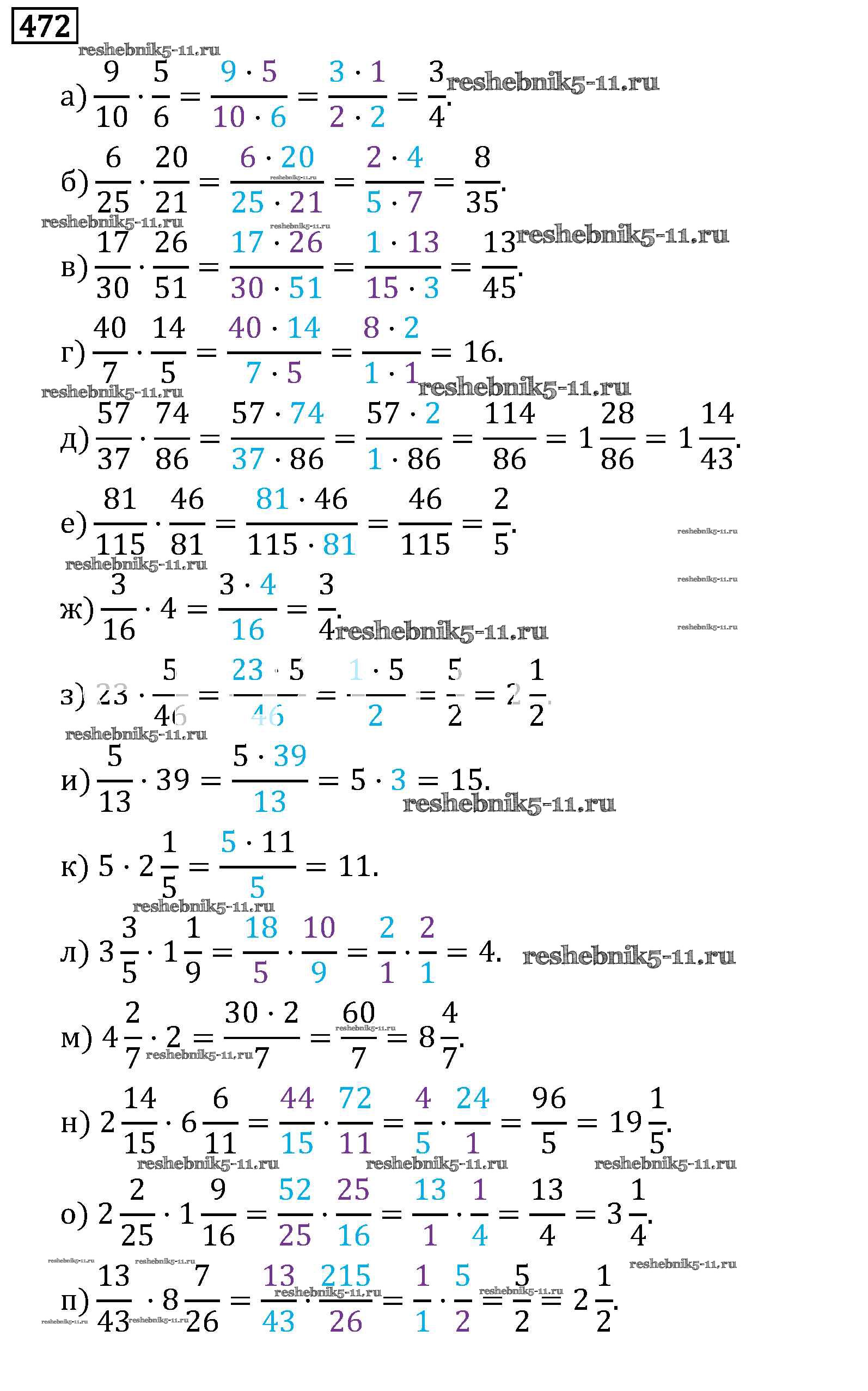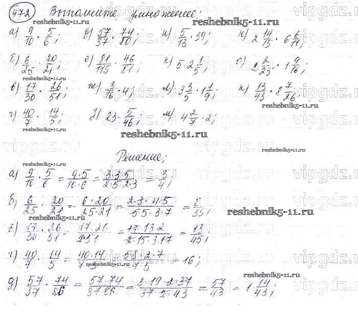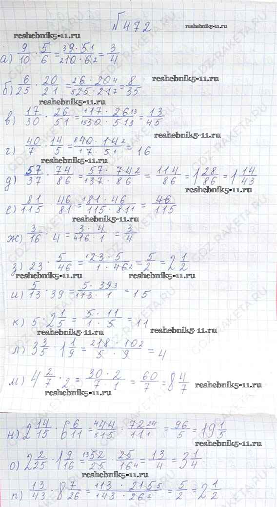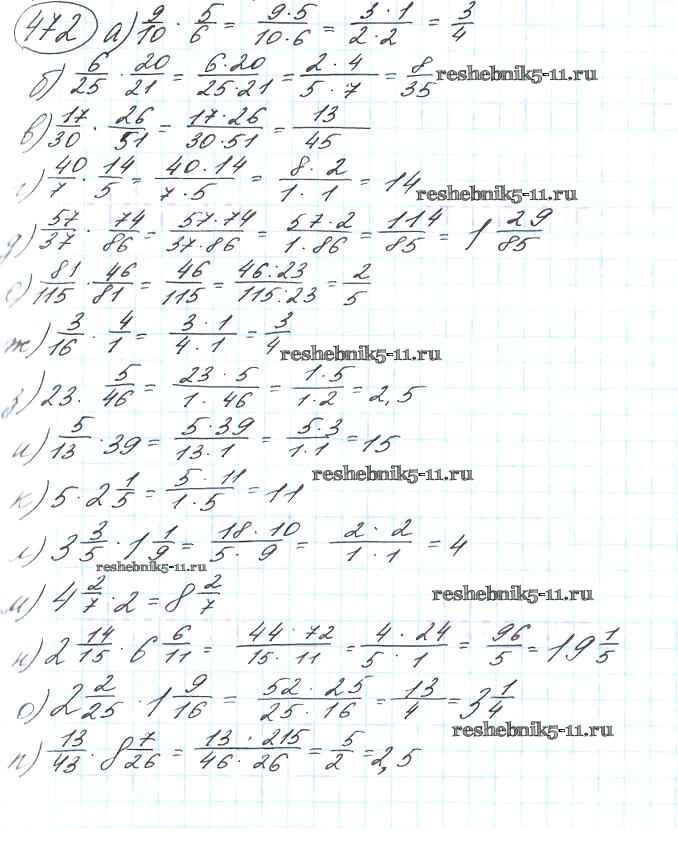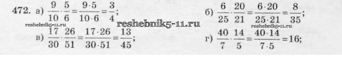 Готовая домашняя работа с ответами по Математике за 6 класс Виленкин, Жохов, Чесноков, Шварцбурд Учебник Мнемозина 2014 ФГОС - §3. Умножение и деление обыкновенных дробей 472