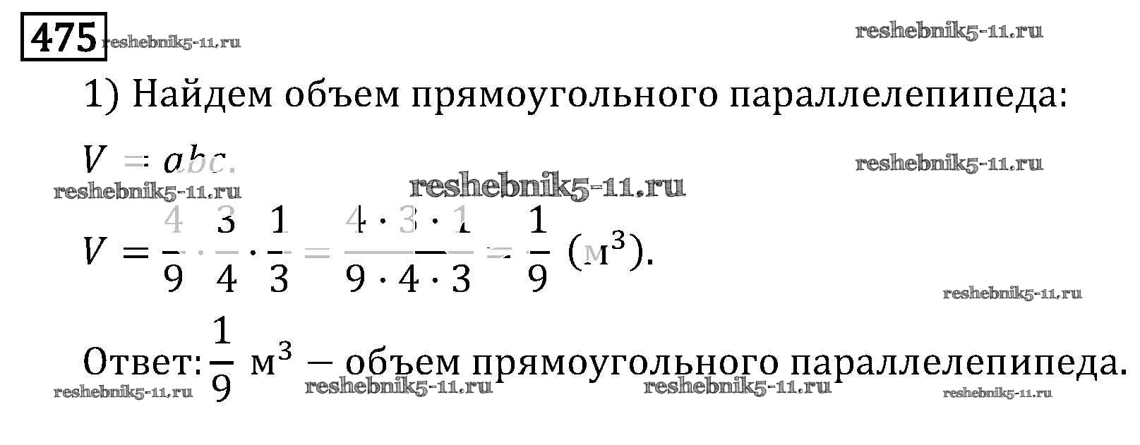 Готовая домашняя работа с ответами по Математике за 6 класс Виленкин, Жохов, Чесноков, Шварцбурд Учебник Мнемозина 2014 ФГОС - §3. Умножение и деление обыкновенных дробей 475