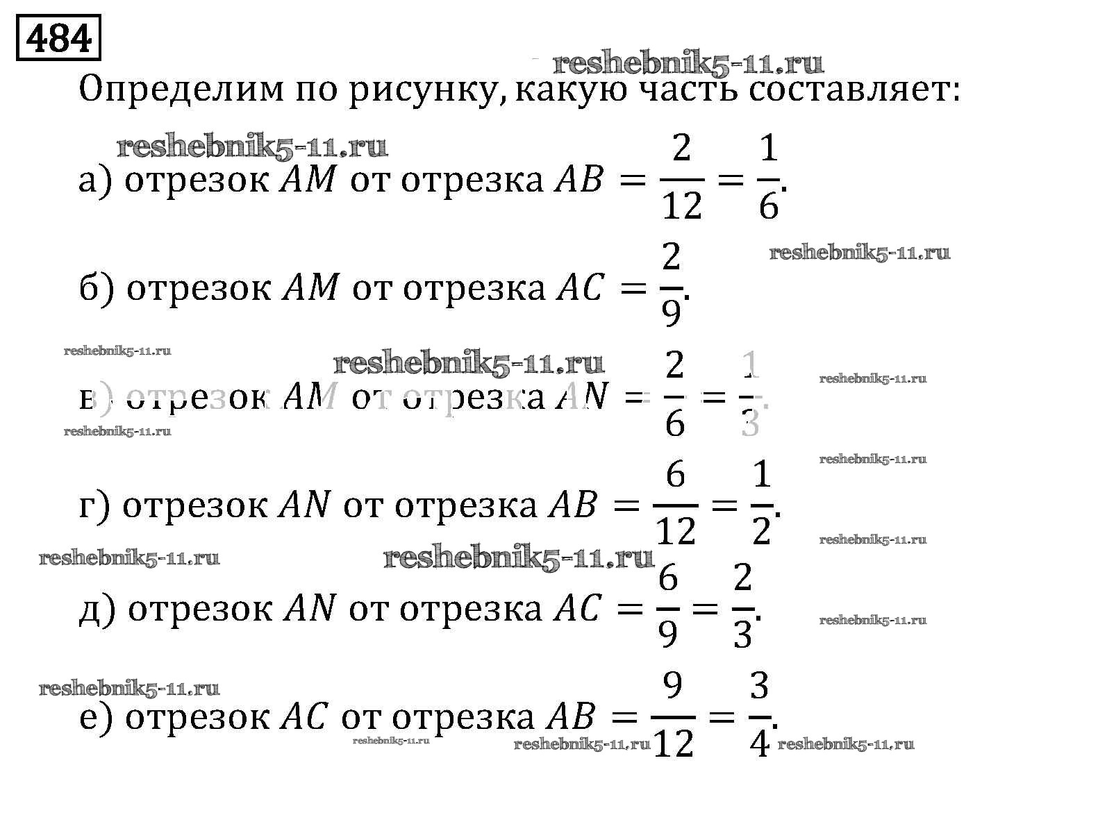 Готовая домашняя работа с ответами по Математике за 6 класс Виленкин, Жохов, Чесноков, Шварцбурд Учебник Мнемозина 2014 ФГОС - §3. Умножение и деление обыкновенных дробей 484