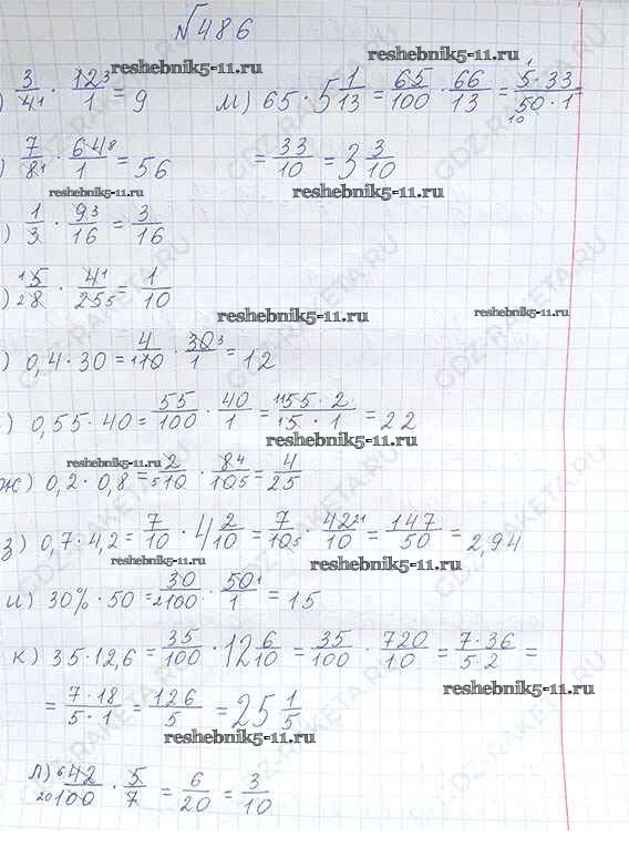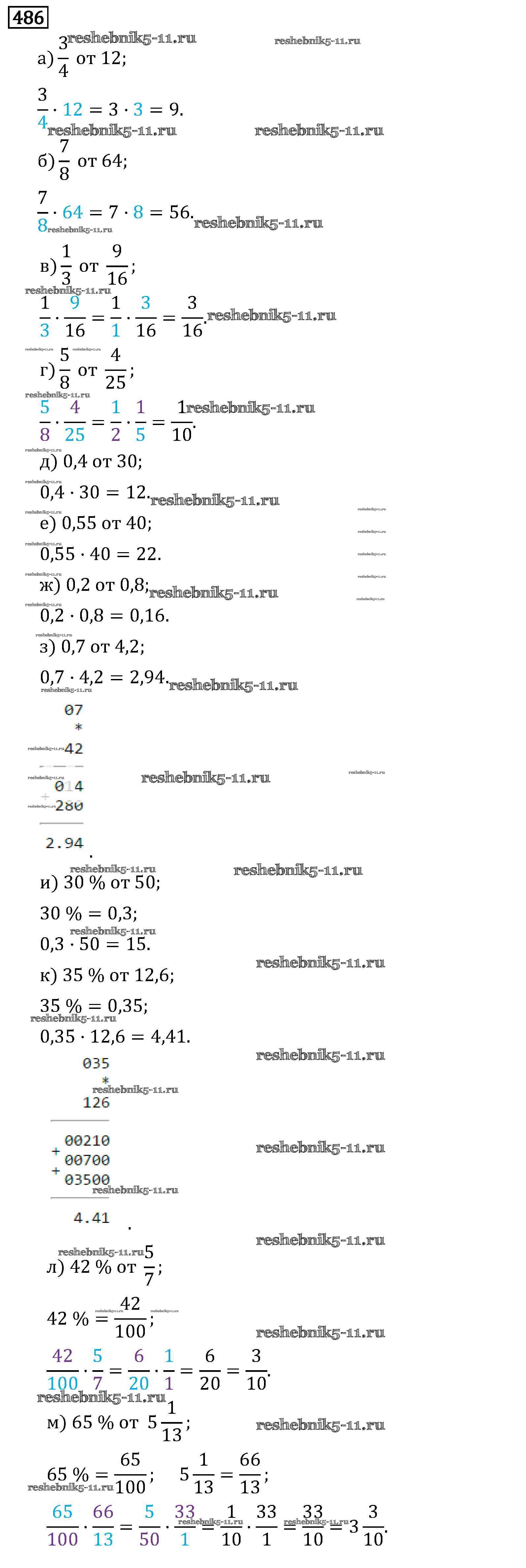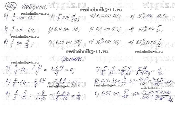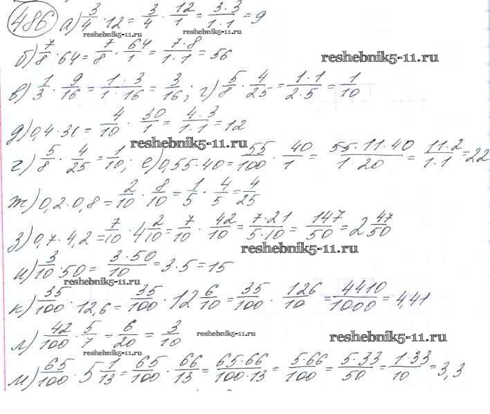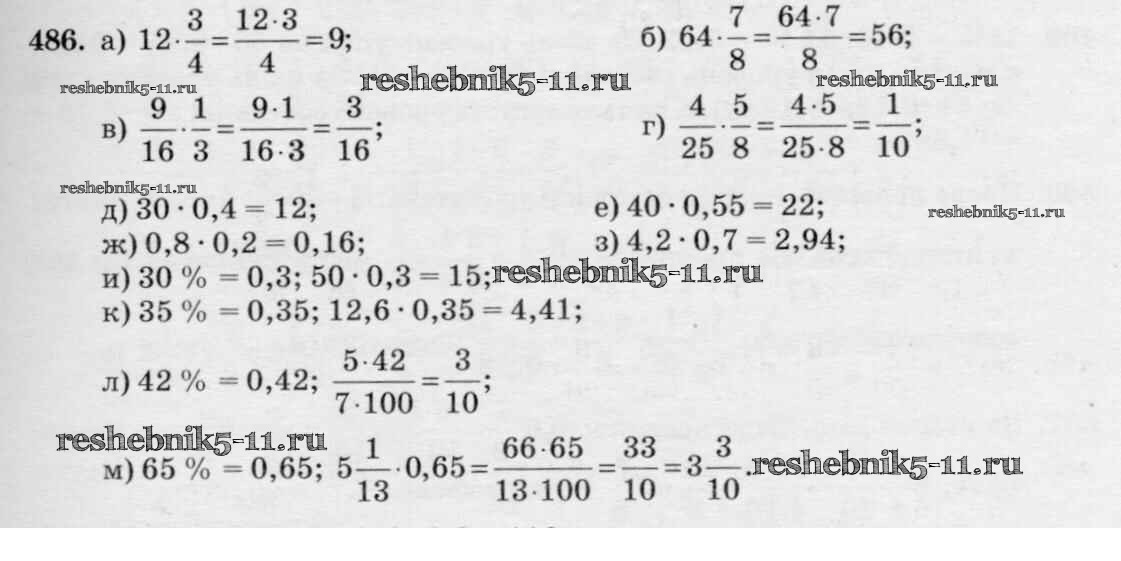Готовая домашняя работа с ответами по Математике за 6 класс Виленкин, Жохов, Чесноков, Шварцбурд Учебник Мнемозина 2014 ФГОС - §3. Умножение и деление обыкновенных дробей 486