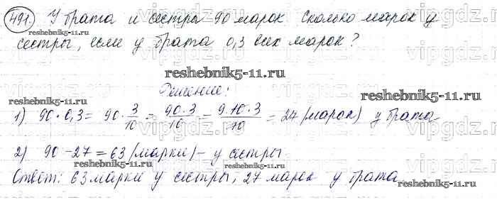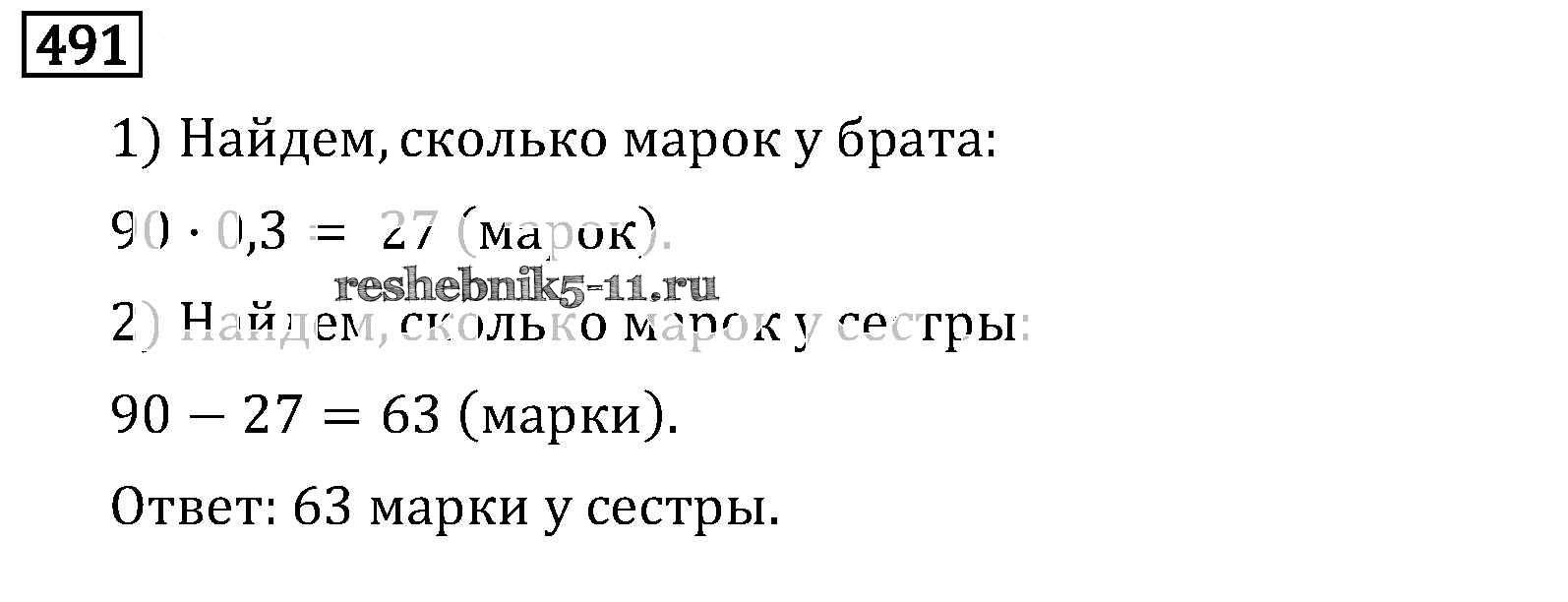 Готовая домашняя работа с ответами по Математике за 6 класс Виленкин, Жохов, Чесноков, Шварцбурд Учебник Мнемозина 2014 ФГОС - §3. Умножение и деление обыкновенных дробей 491