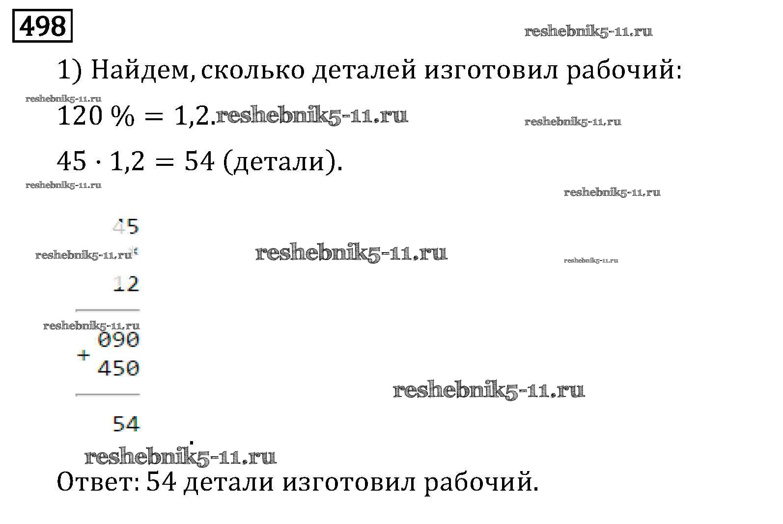 Готовая домашняя работа с ответами по Математике за 6 класс Виленкин, Жохов, Чесноков, Шварцбурд Учебник Мнемозина 2014 ФГОС - §3. Умножение и деление обыкновенных дробей 498