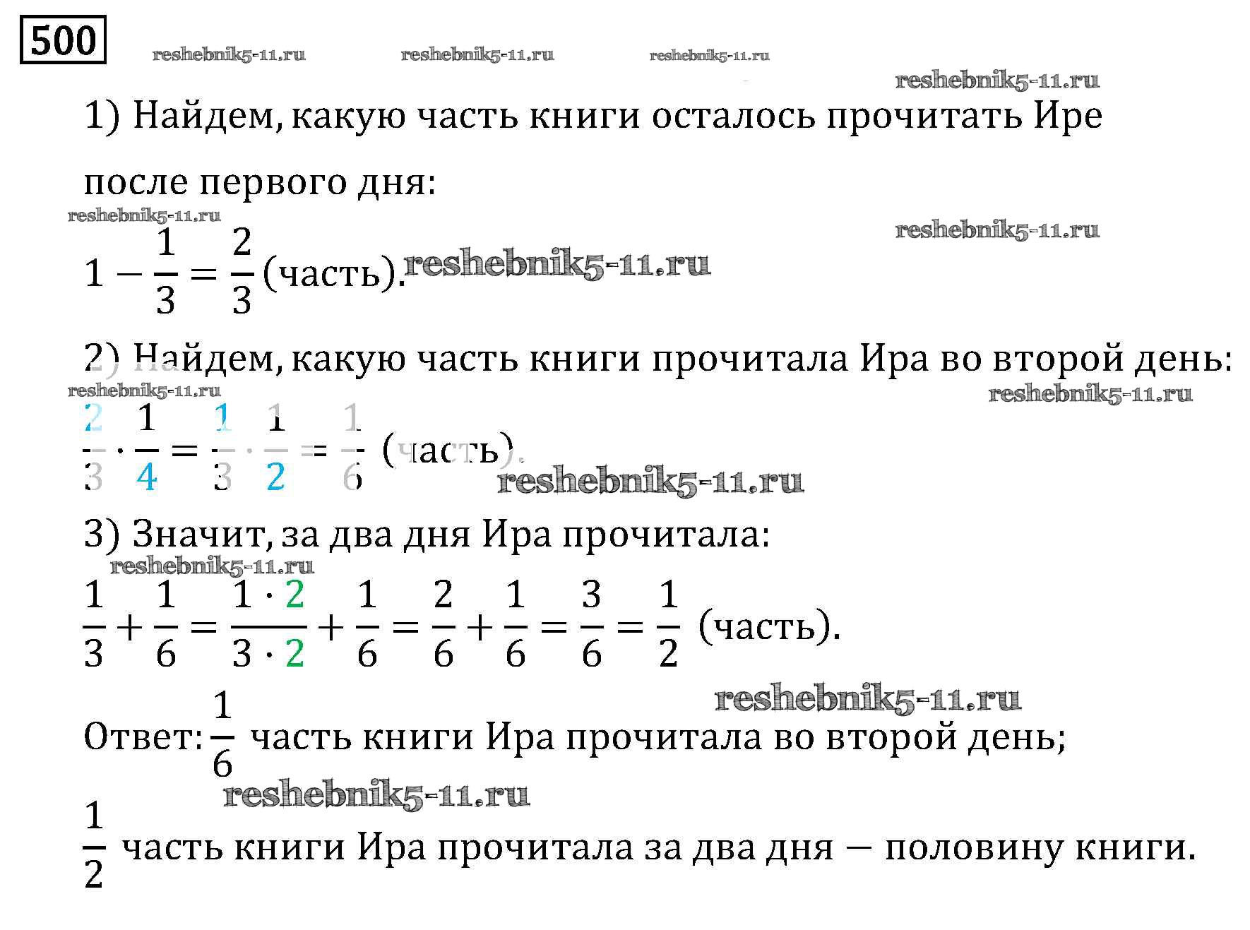 Готовая домашняя работа с ответами по Математике за 6 класс Виленкин, Жохов, Чесноков, Шварцбурд Учебник Мнемозина 2014 ФГОС - §3. Умножение и деление обыкновенных дробей 500