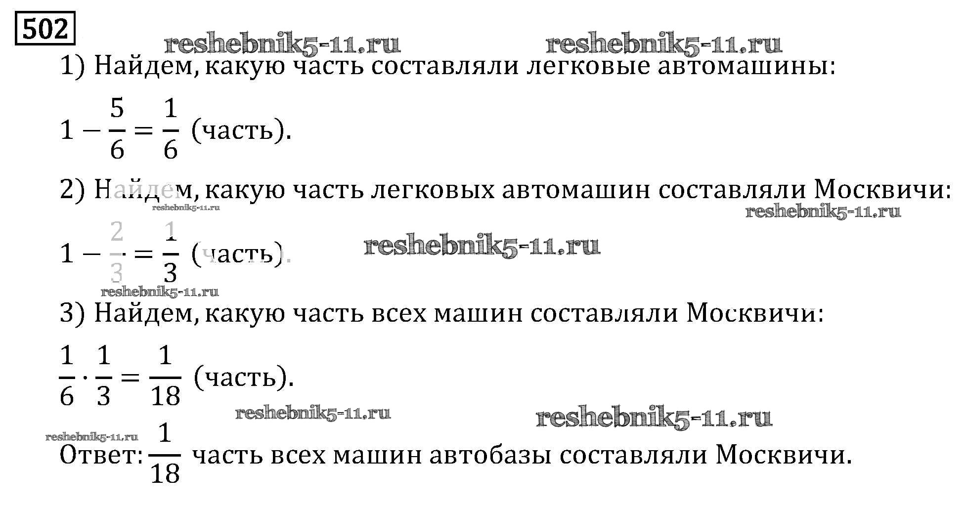 Готовая домашняя работа с ответами по Математике за 6 класс Виленкин, Жохов, Чесноков, Шварцбурд Учебник Мнемозина 2014 ФГОС - §3. Умножение и деление обыкновенных дробей 502