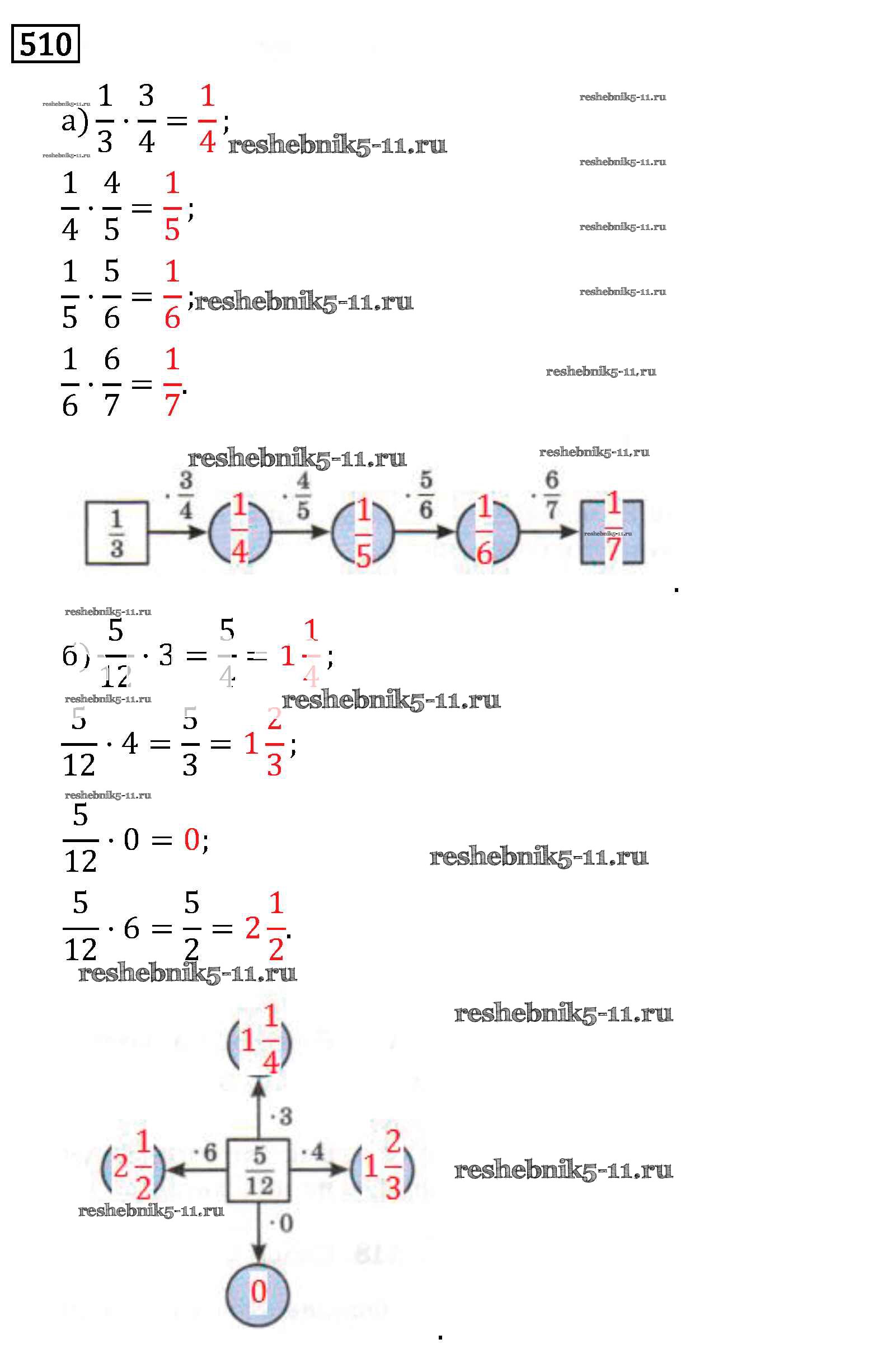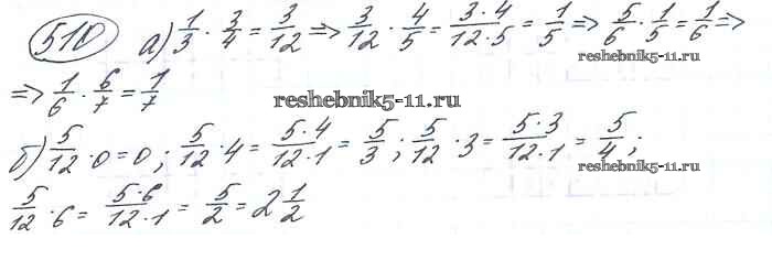 Готовая домашняя работа с ответами по Математике за 6 класс Виленкин, Жохов, Чесноков, Шварцбурд Учебник Мнемозина 2014 ФГОС - §3. Умножение и деление обыкновенных дробей 510