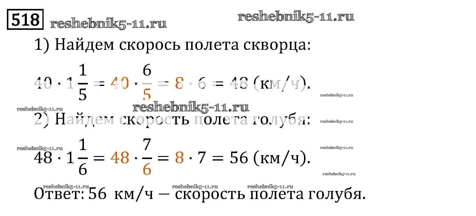 Готовая домашняя работа с ответами по Математике за 6 класс Виленкин, Жохов, Чесноков, Шварцбурд Учебник Мнемозина 2014 ФГОС - §3. Умножение и деление обыкновенных дробей 518