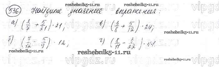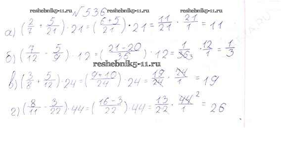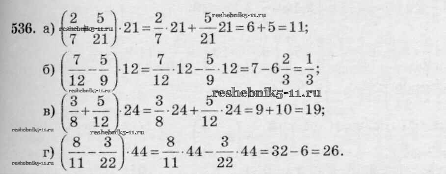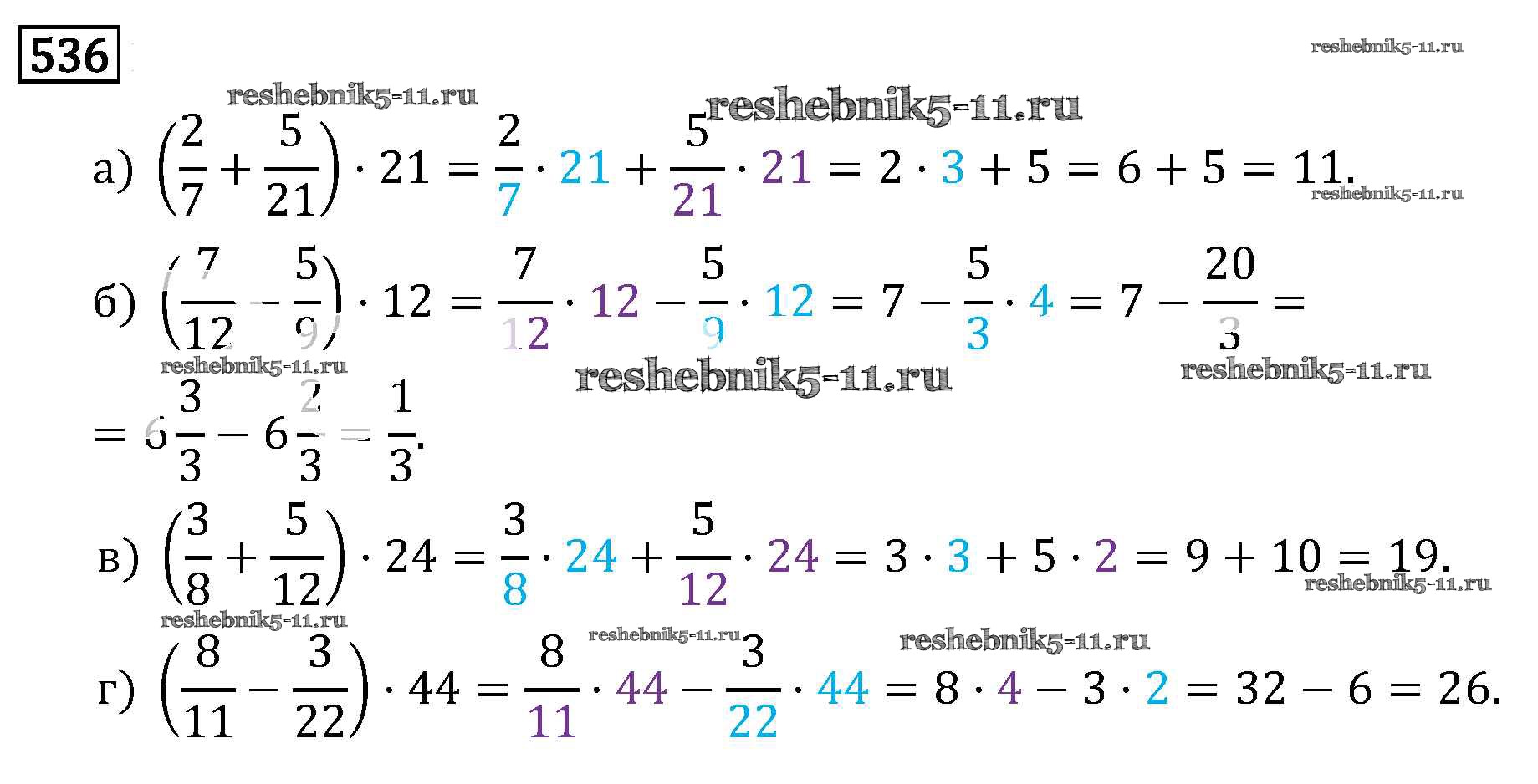 Готовая домашняя работа с ответами по Математике за 6 класс Виленкин, Жохов, Чесноков, Шварцбурд Учебник Мнемозина 2014 ФГОС - §3. Умножение и деление обыкновенных дробей 536