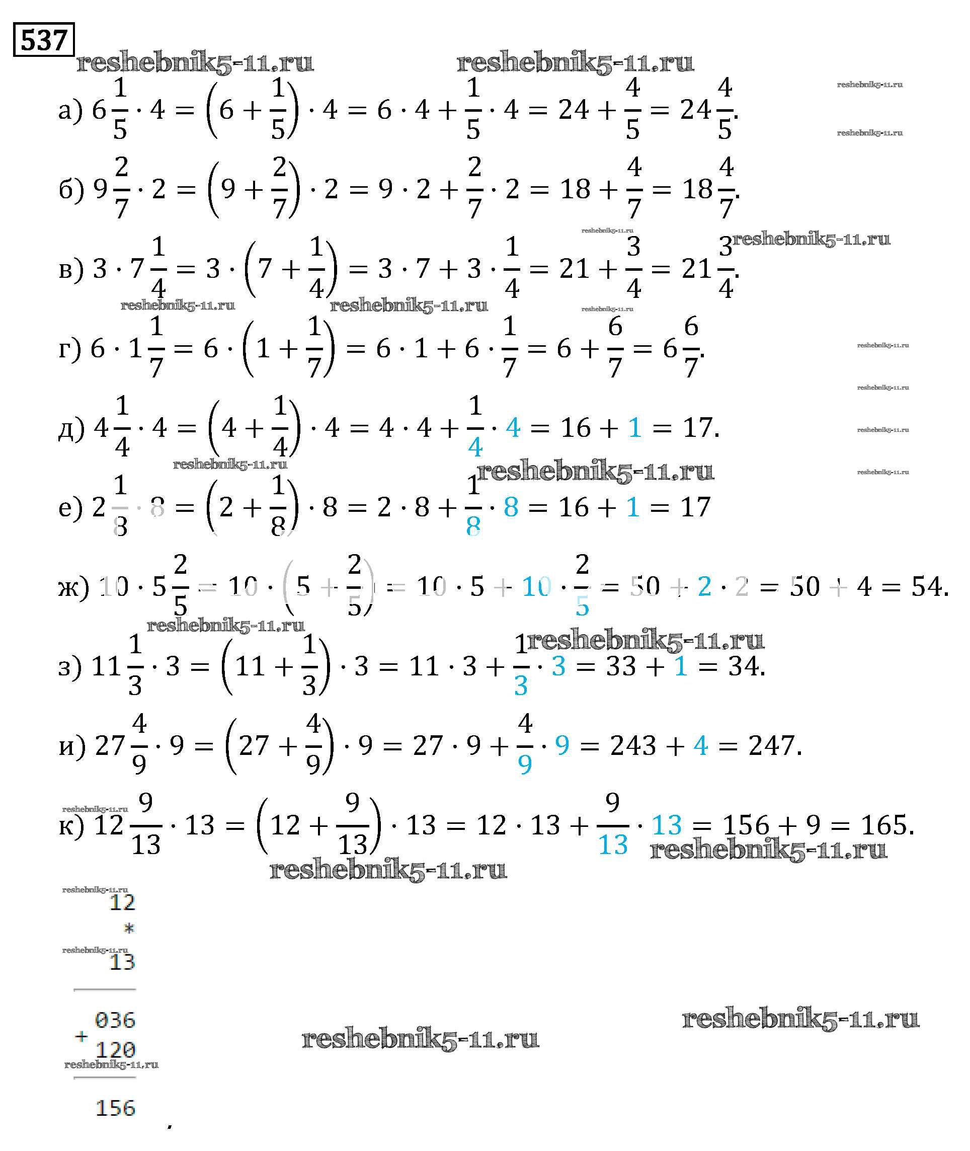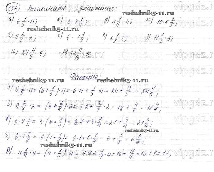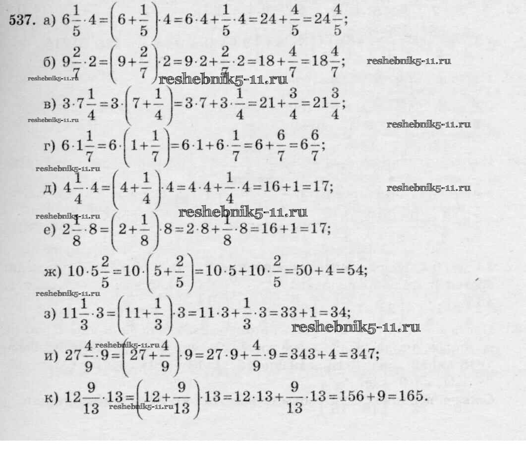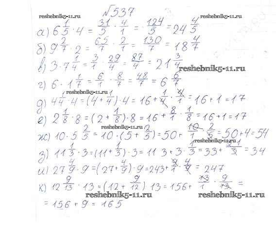 Готовая домашняя работа с ответами по Математике за 6 класс Виленкин, Жохов, Чесноков, Шварцбурд Учебник Мнемозина 2014 ФГОС - §3. Умножение и деление обыкновенных дробей 537