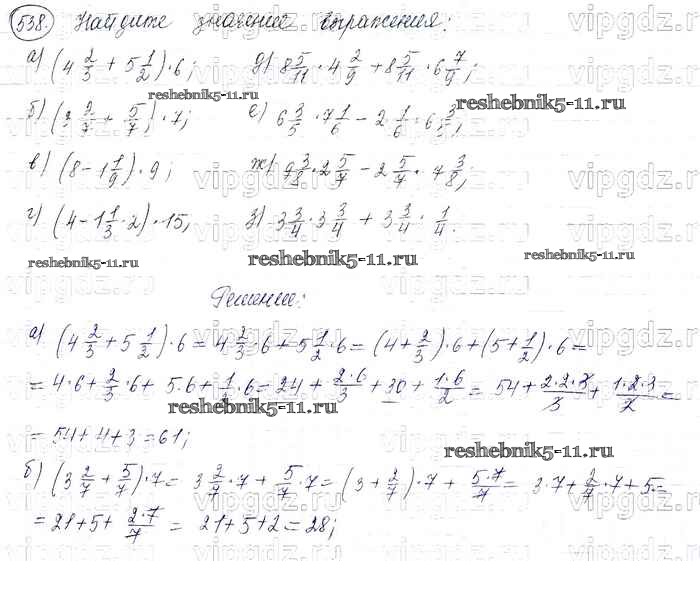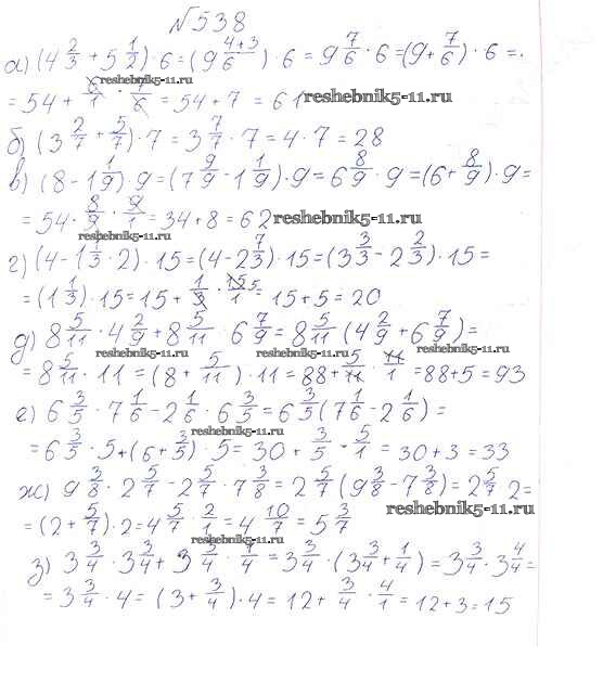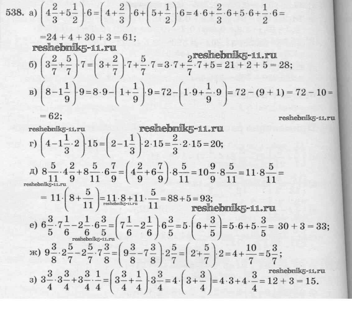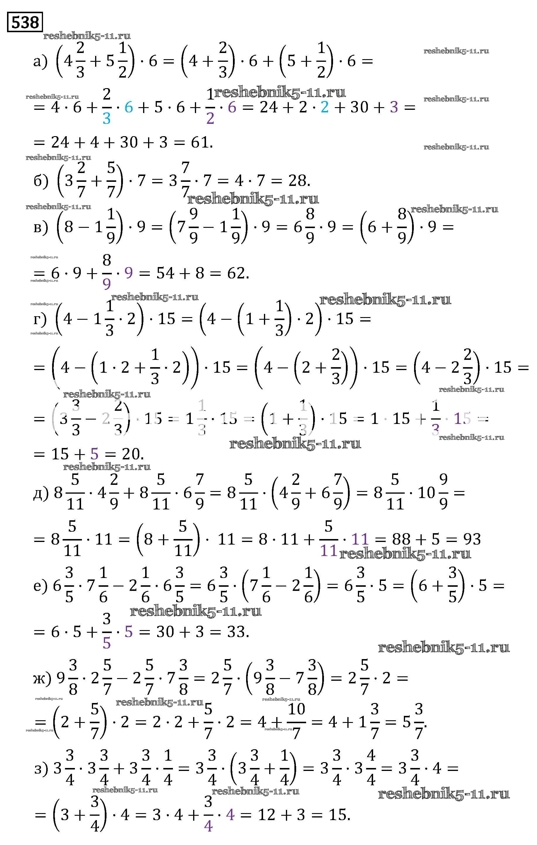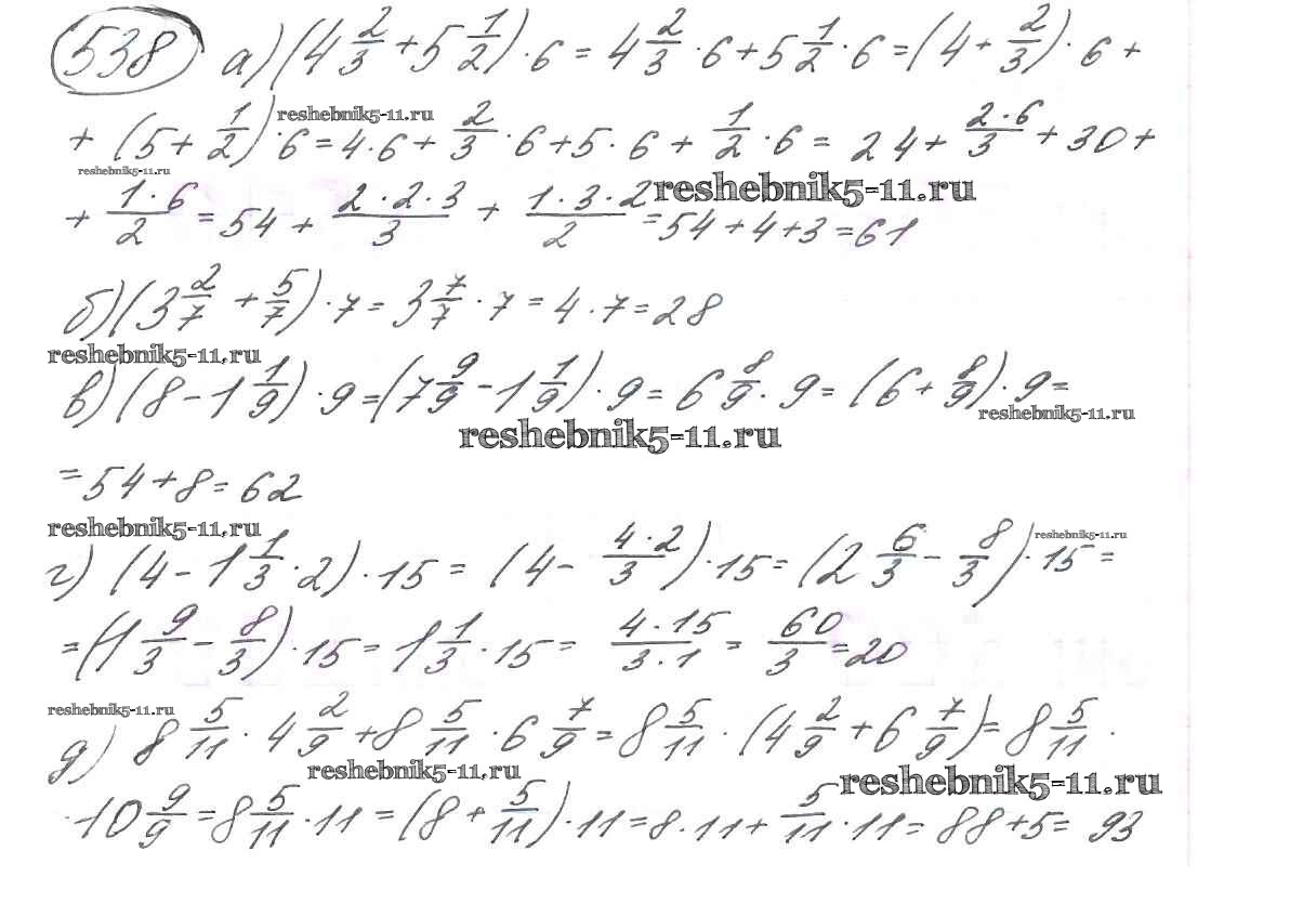 Готовая домашняя работа с ответами по Математике за 6 класс Виленкин, Жохов, Чесноков, Шварцбурд Учебник Мнемозина 2014 ФГОС - §3. Умножение и деление обыкновенных дробей 538