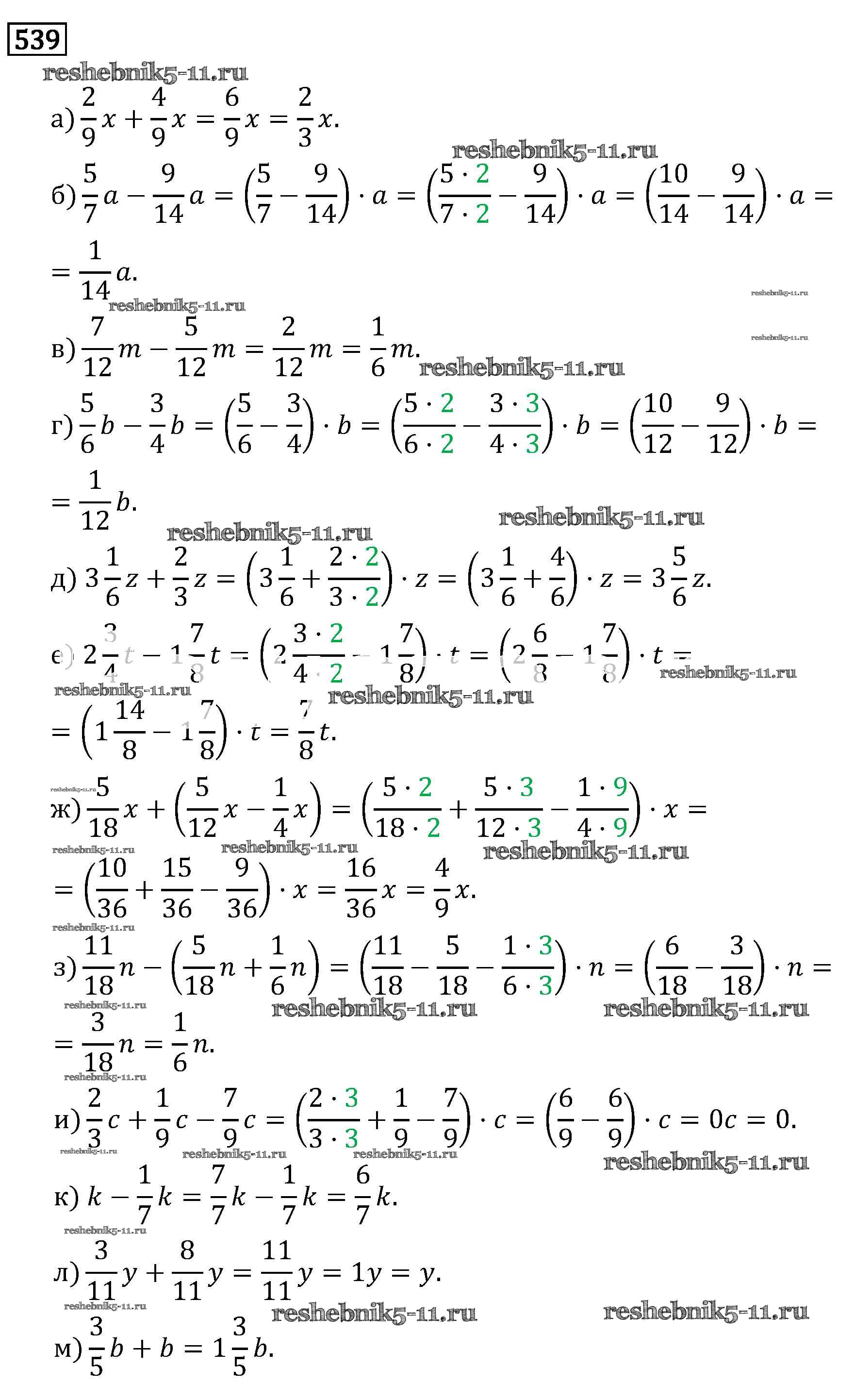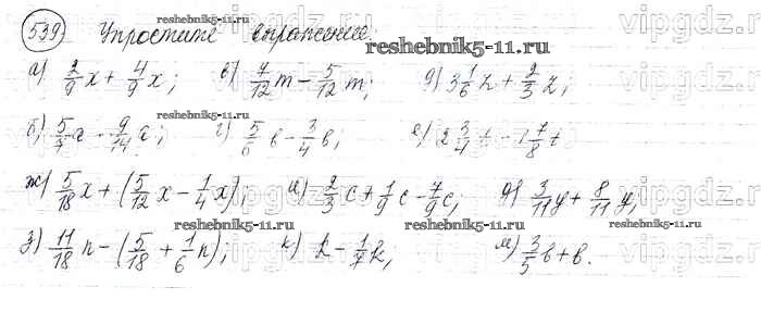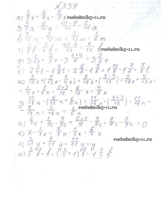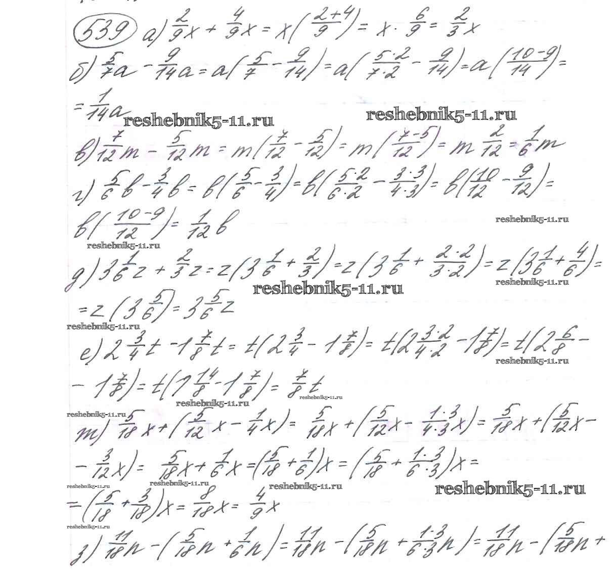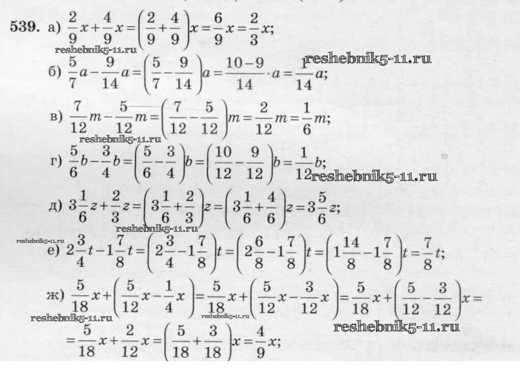 Готовая домашняя работа с ответами по Математике за 6 класс Виленкин, Жохов, Чесноков, Шварцбурд Учебник Мнемозина 2014 ФГОС - §3. Умножение и деление обыкновенных дробей 539