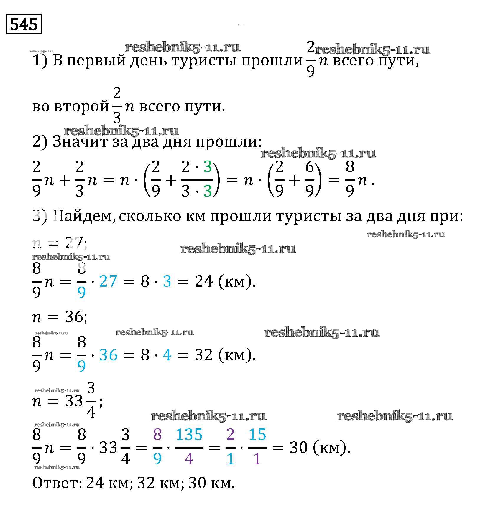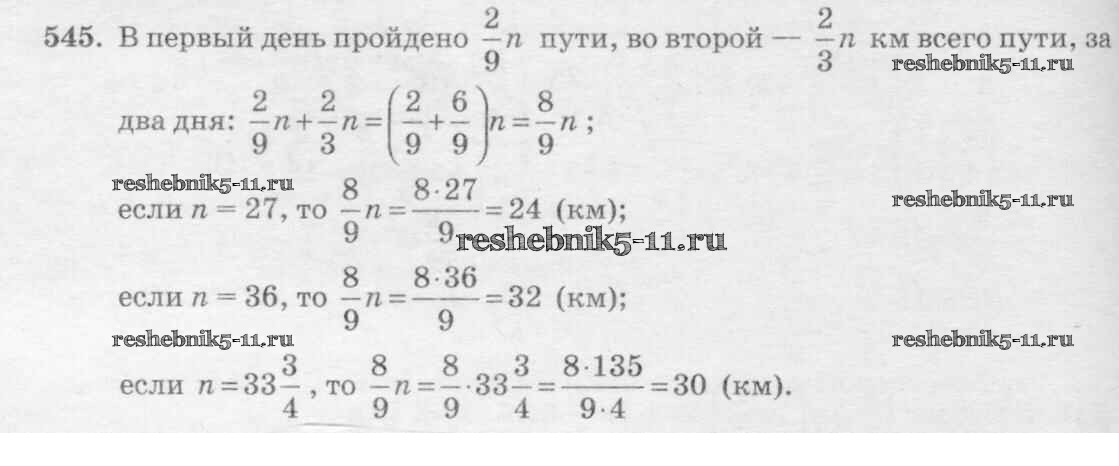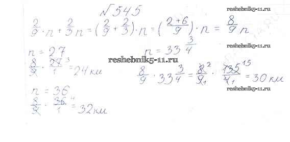 Готовая домашняя работа с ответами по Математике за 6 класс Виленкин, Жохов, Чесноков, Шварцбурд Учебник Мнемозина 2014 ФГОС - §3. Умножение и деление обыкновенных дробей 545