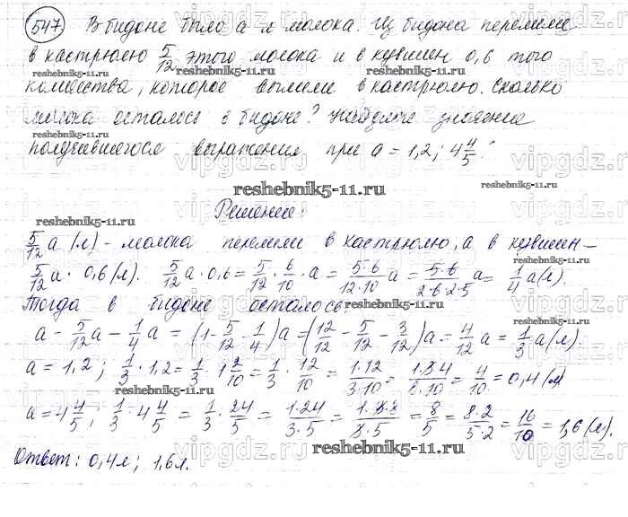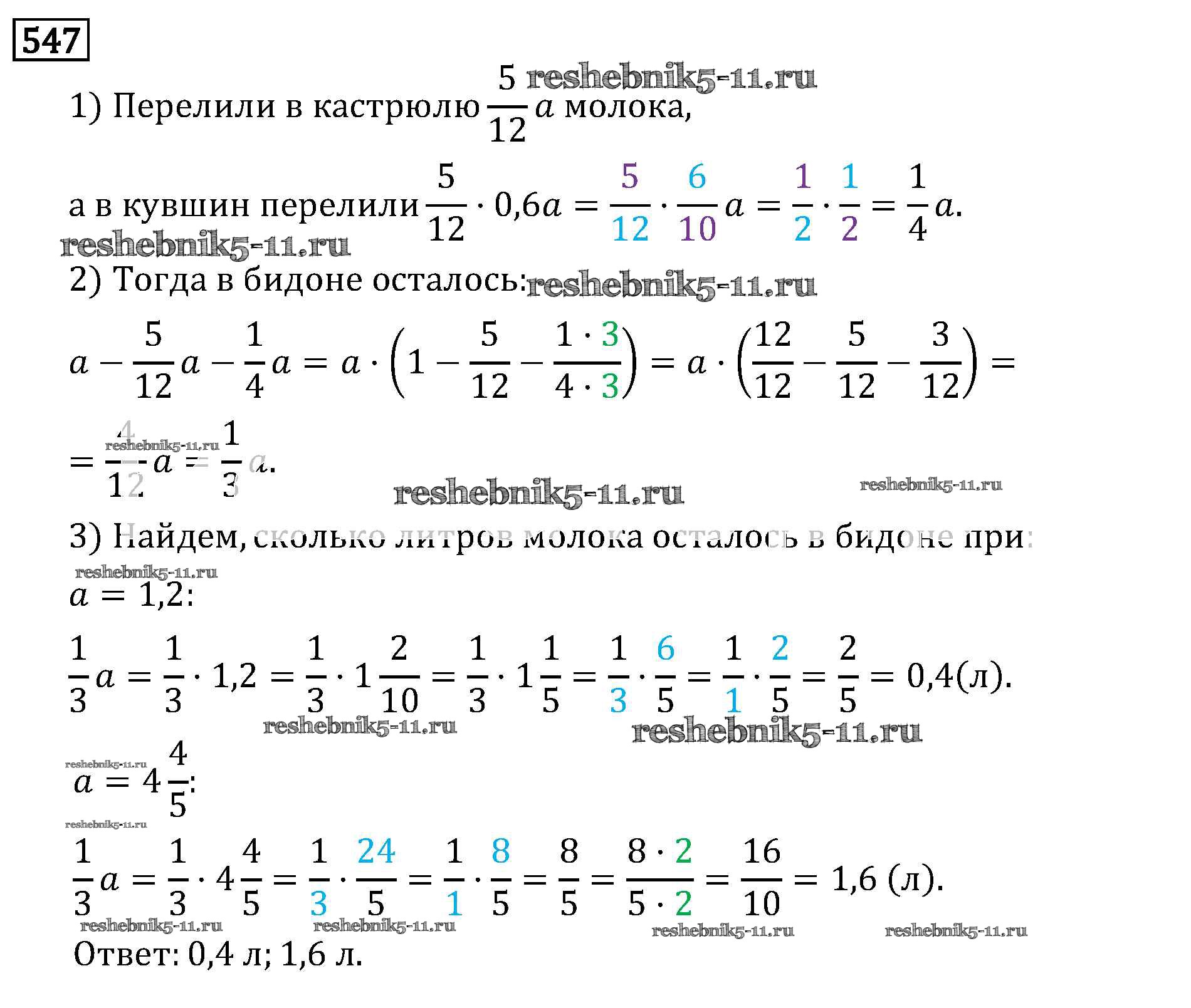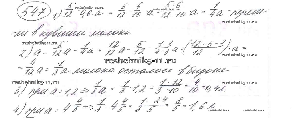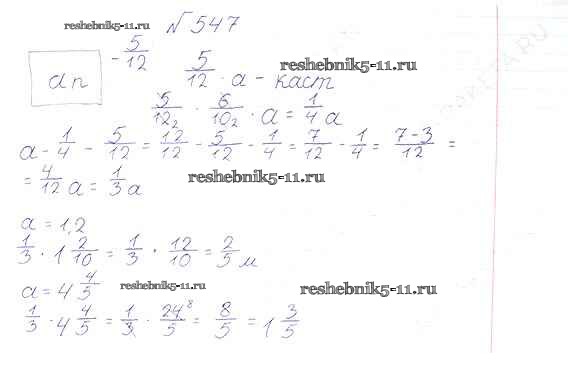 Готовая домашняя работа с ответами по Математике за 6 класс Виленкин, Жохов, Чесноков, Шварцбурд Учебник Мнемозина 2014 ФГОС - §3. Умножение и деление обыкновенных дробей 547