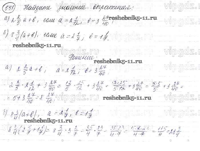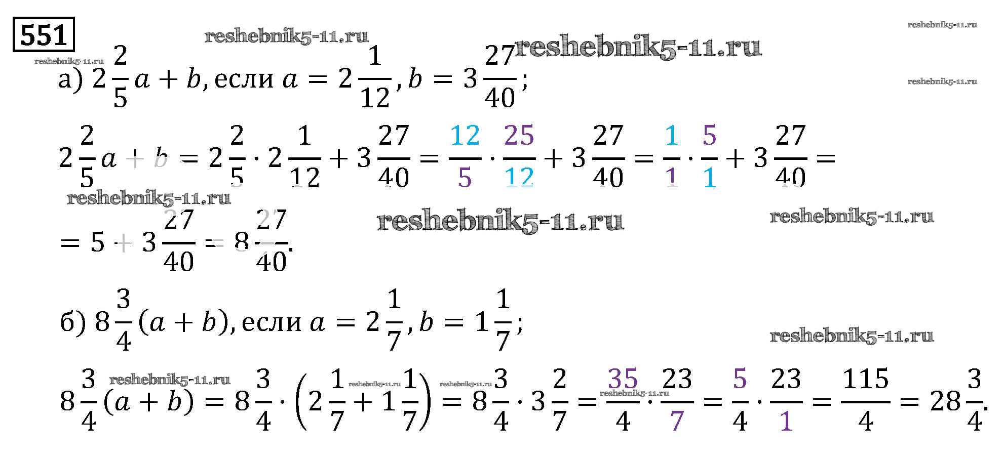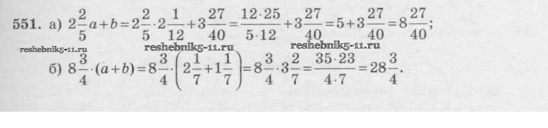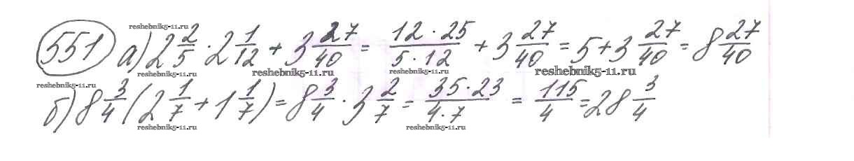 Готовая домашняя работа с ответами по Математике за 6 класс Виленкин, Жохов, Чесноков, Шварцбурд Учебник Мнемозина 2014 ФГОС - §3. Умножение и деление обыкновенных дробей 551