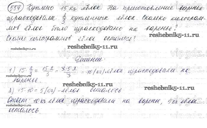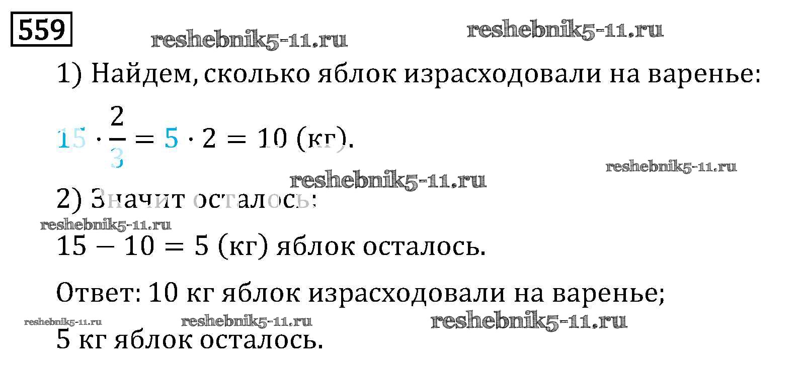 Готовая домашняя работа с ответами по Математике за 6 класс Виленкин, Жохов, Чесноков, Шварцбурд Учебник Мнемозина 2014 ФГОС - §3. Умножение и деление обыкновенных дробей 559