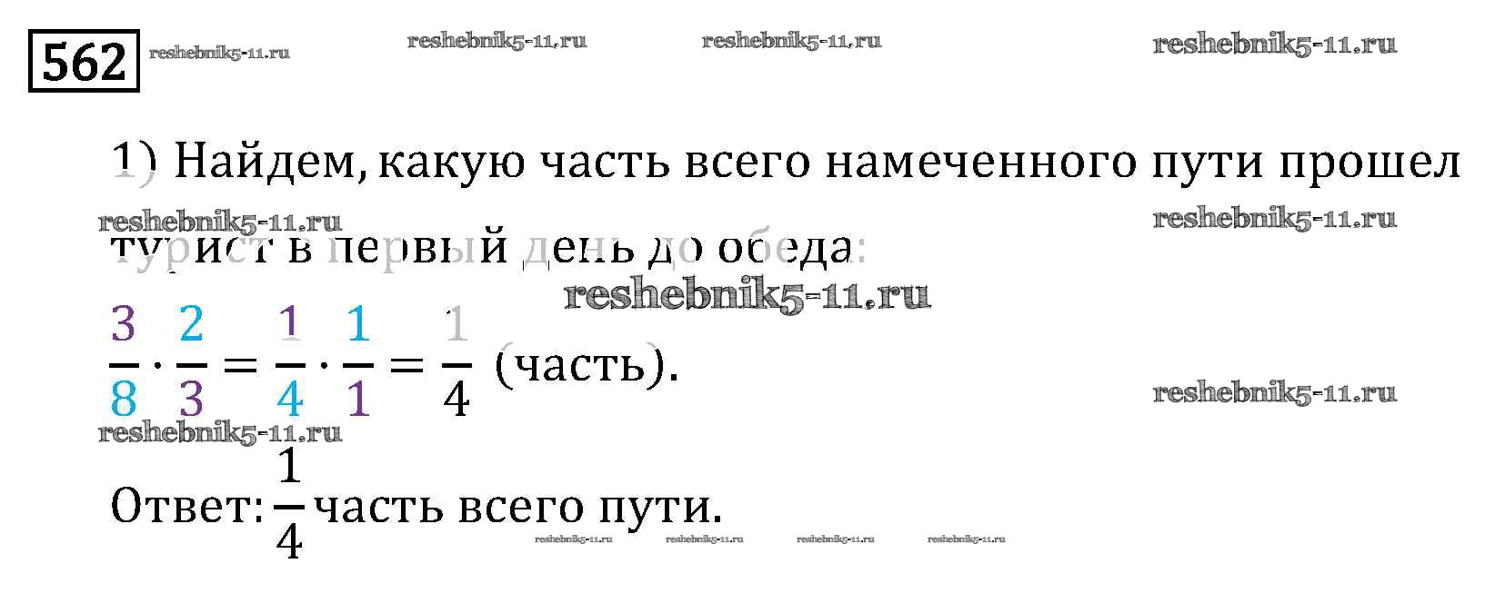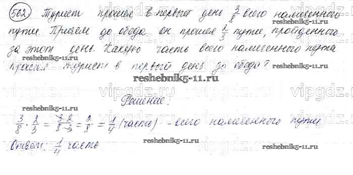 Готовая домашняя работа с ответами по Математике за 6 класс Виленкин, Жохов, Чесноков, Шварцбурд Учебник Мнемозина 2014 ФГОС - §3. Умножение и деление обыкновенных дробей 562