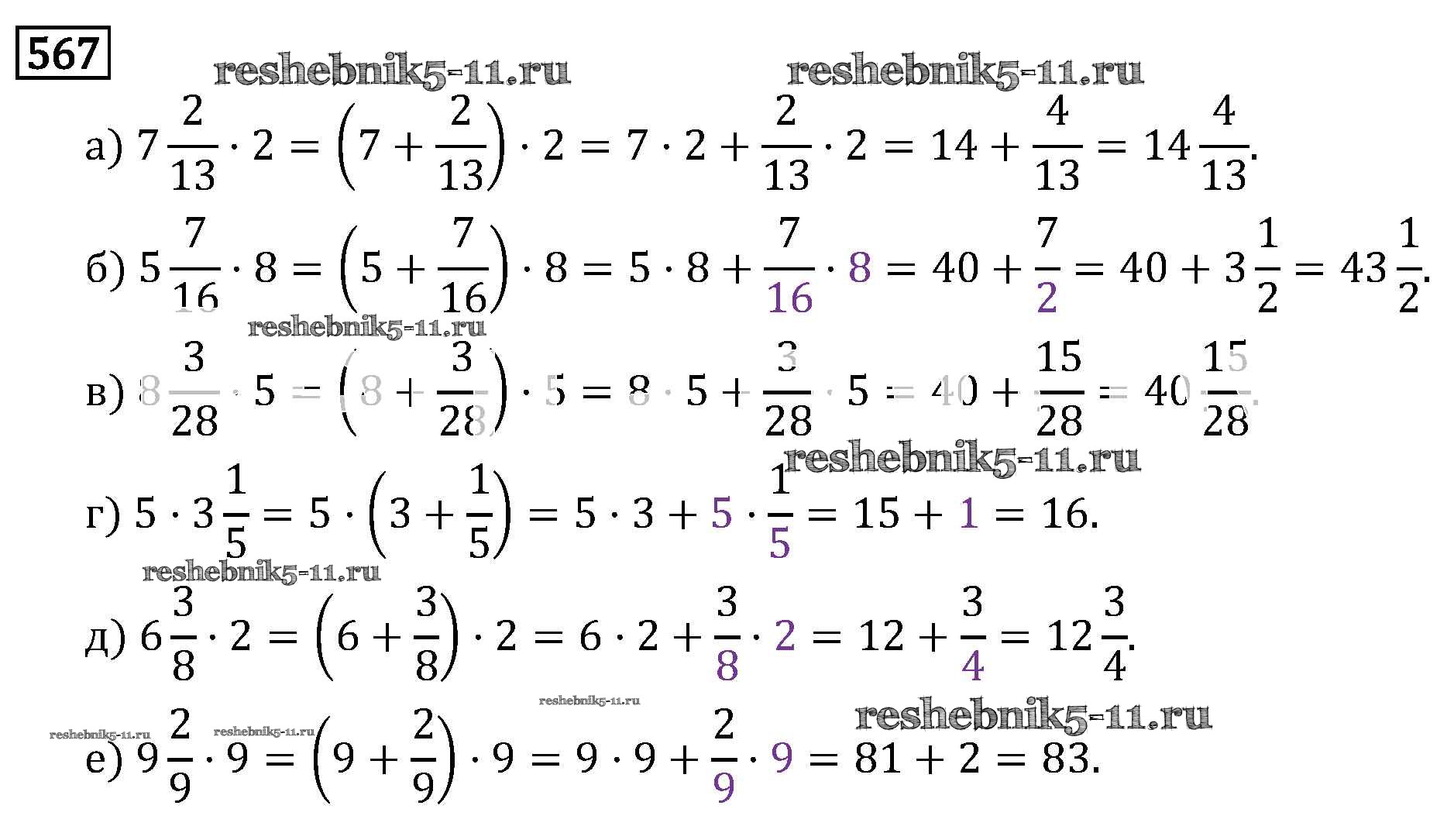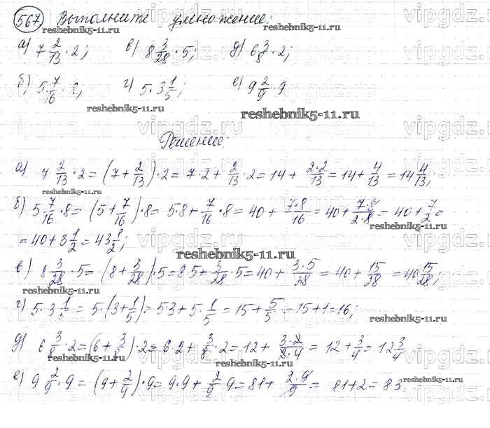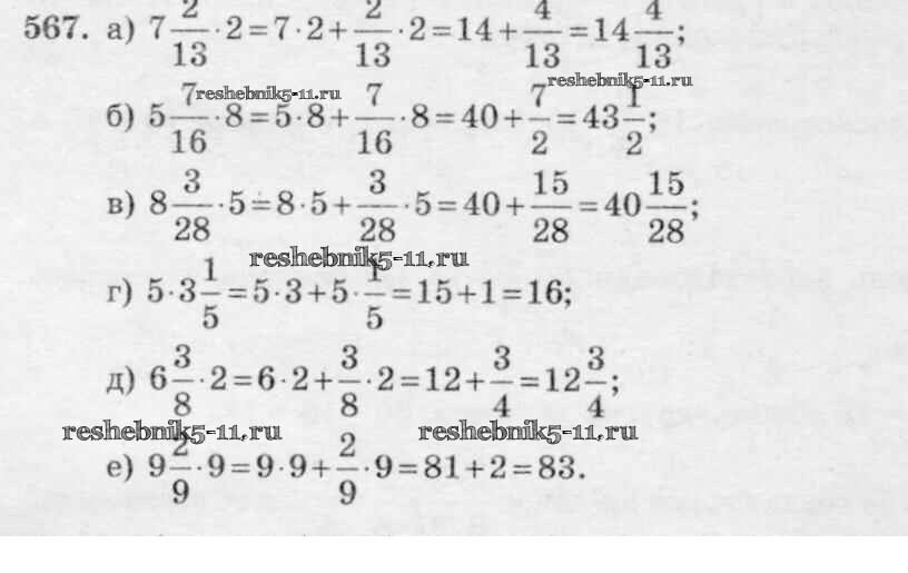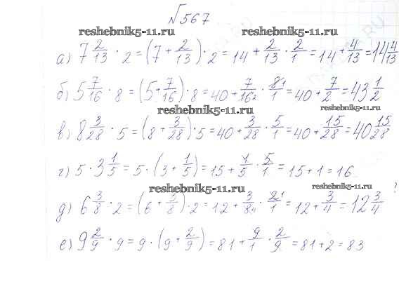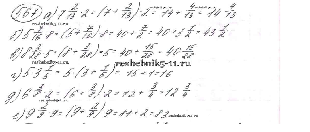 Готовая домашняя работа с ответами по Математике за 6 класс Виленкин, Жохов, Чесноков, Шварцбурд Учебник Мнемозина 2014 ФГОС - §3. Умножение и деление обыкновенных дробей 567