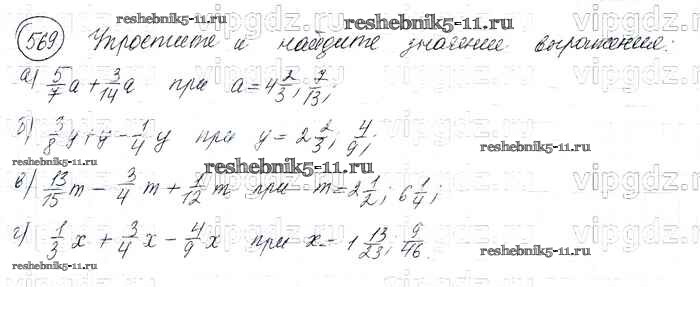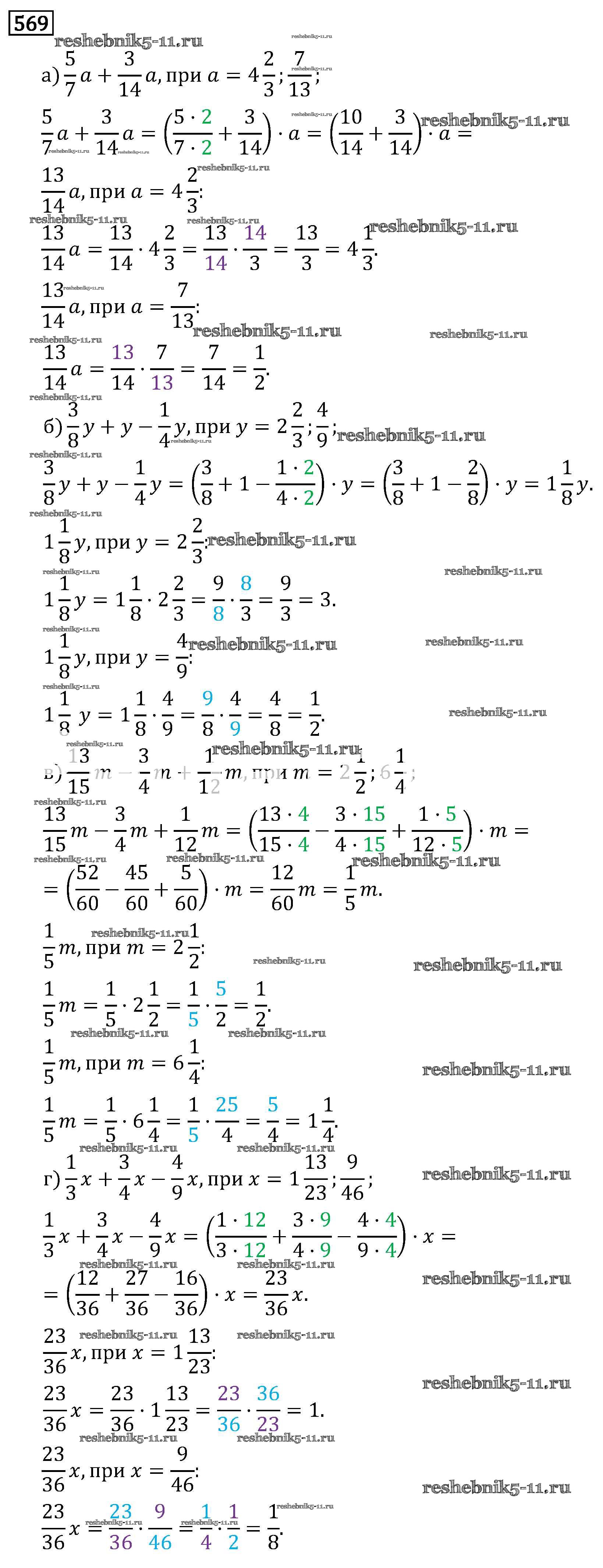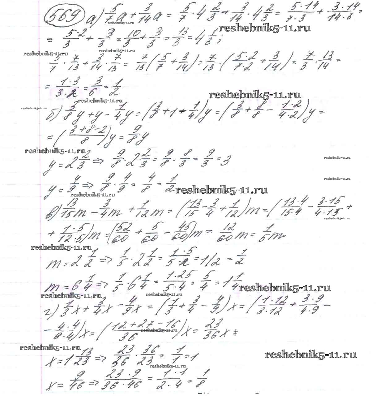 Готовая домашняя работа с ответами по Математике за 6 класс Виленкин, Жохов, Чесноков, Шварцбурд Учебник Мнемозина 2014 ФГОС - §3. Умножение и деление обыкновенных дробей 569