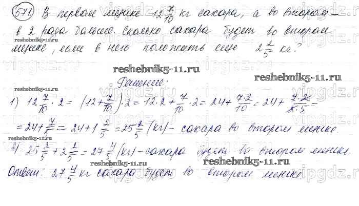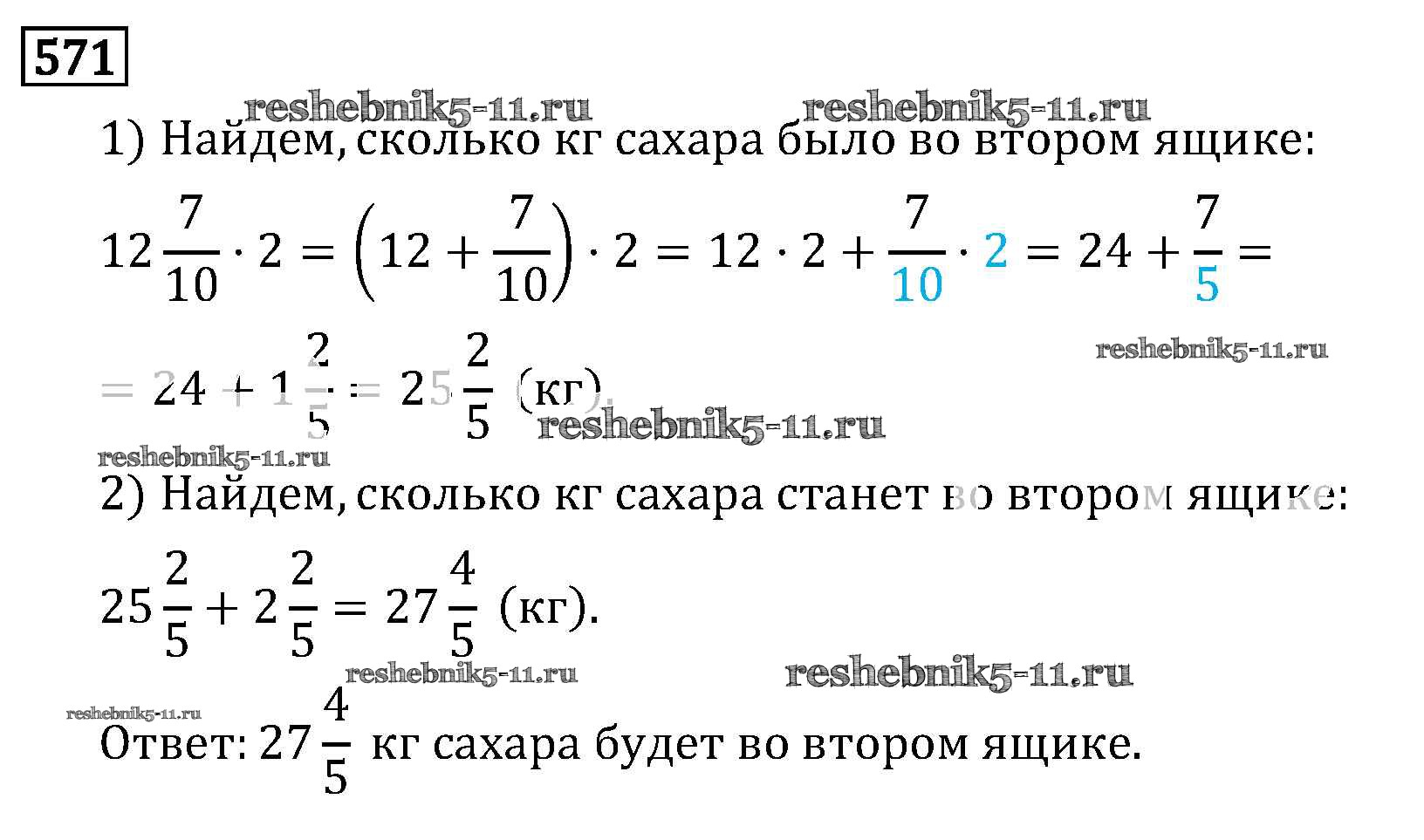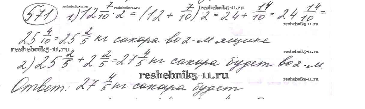 Готовая домашняя работа с ответами по Математике за 6 класс Виленкин, Жохов, Чесноков, Шварцбурд Учебник Мнемозина 2014 ФГОС - §3. Умножение и деление обыкновенных дробей 571