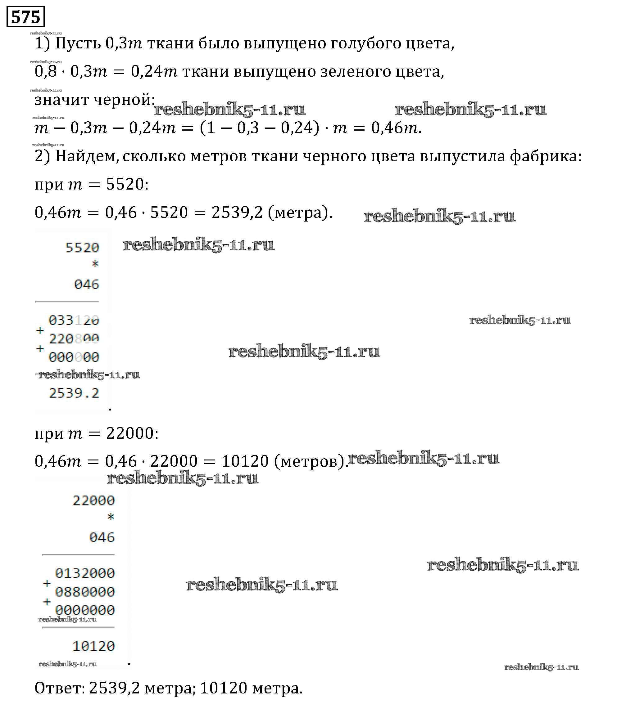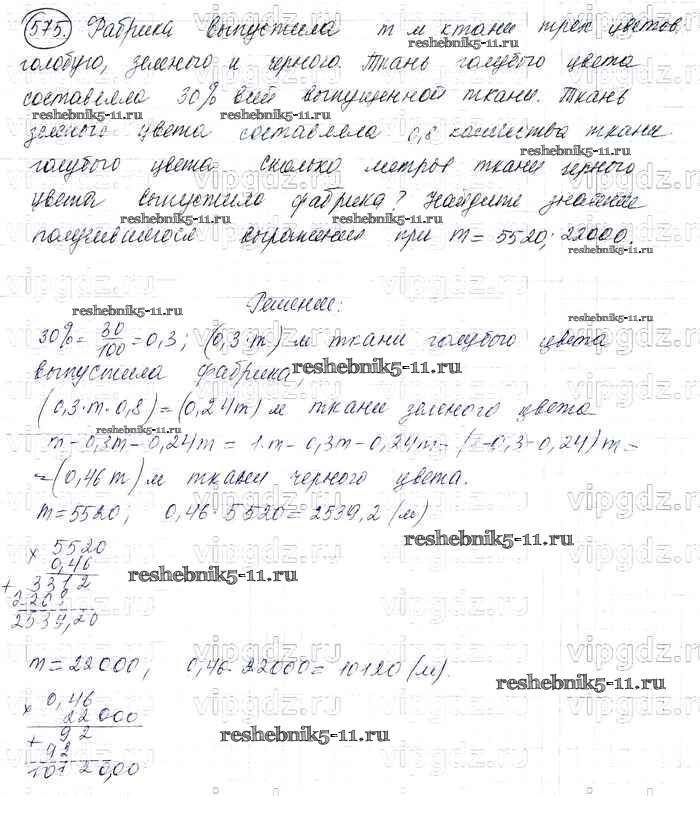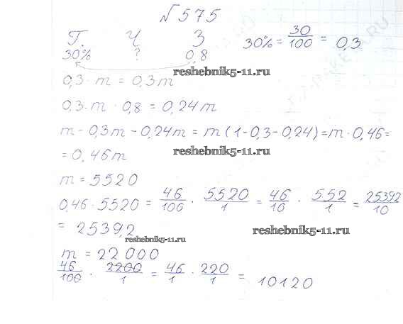 Готовая домашняя работа с ответами по Математике за 6 класс Виленкин, Жохов, Чесноков, Шварцбурд Учебник Мнемозина 2014 ФГОС - §3. Умножение и деление обыкновенных дробей 575
