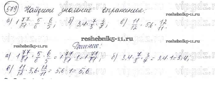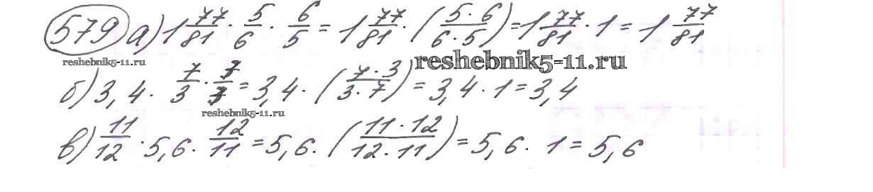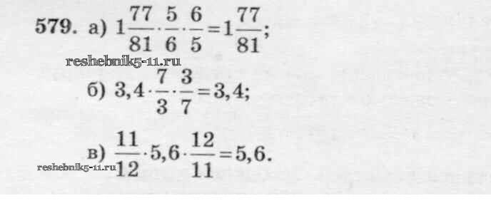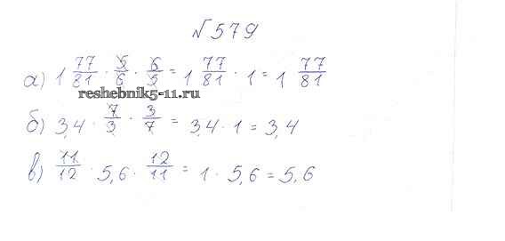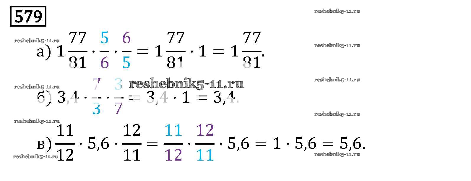 Готовая домашняя работа с ответами по Математике за 6 класс Виленкин, Жохов, Чесноков, Шварцбурд Учебник Мнемозина 2014 ФГОС - §3. Умножение и деление обыкновенных дробей 579