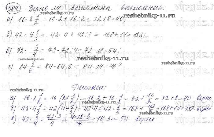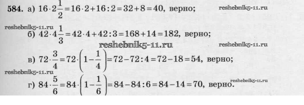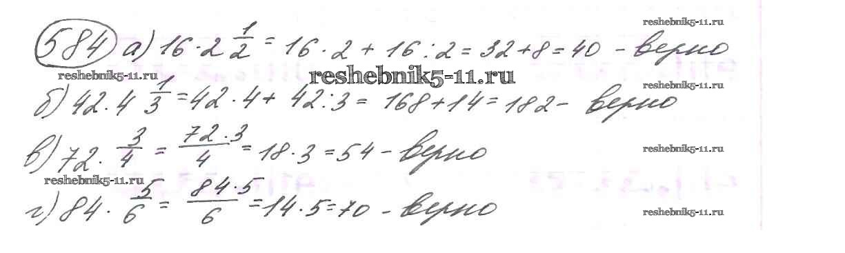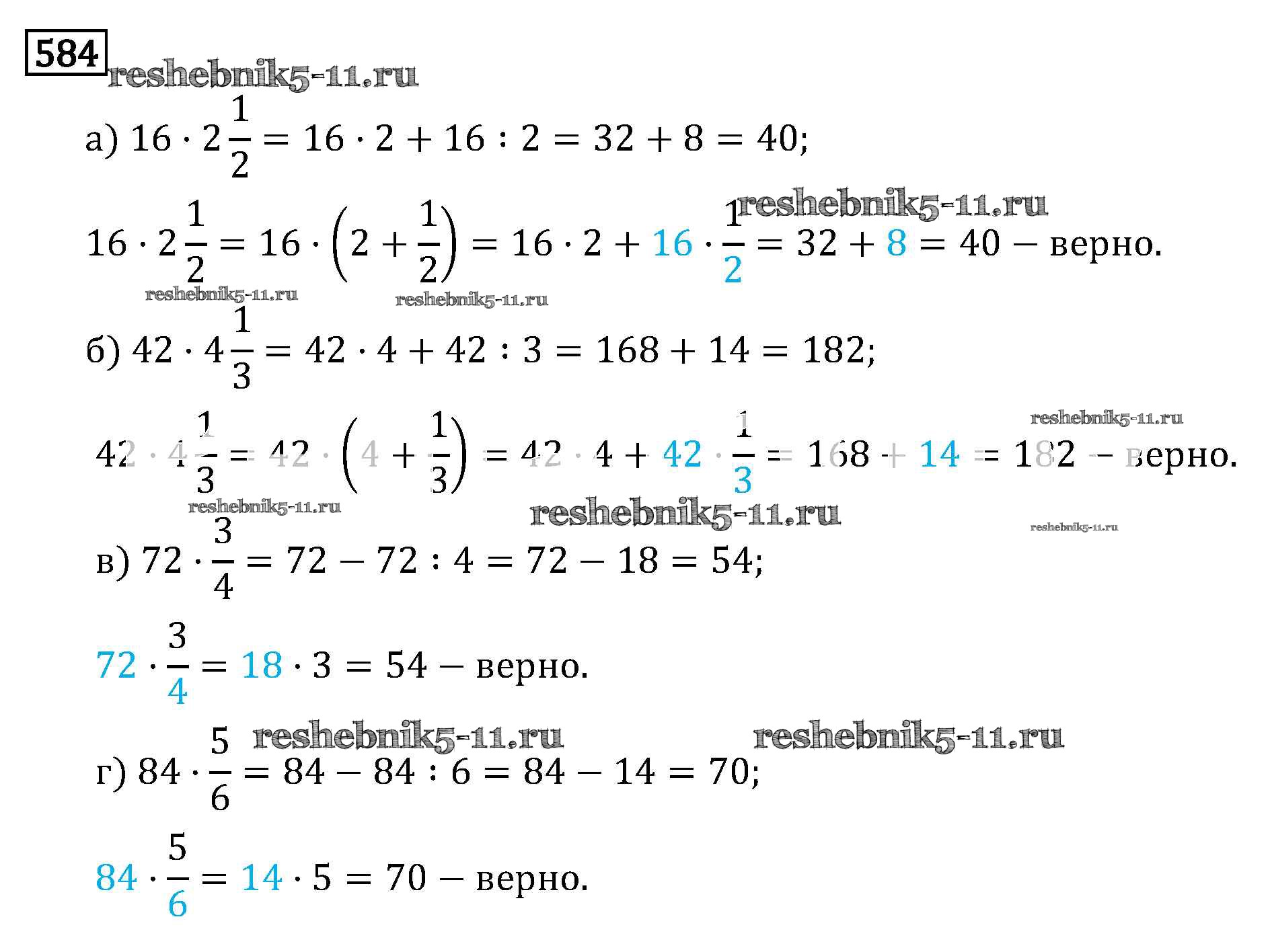 Готовая домашняя работа с ответами по Математике за 6 класс Виленкин, Жохов, Чесноков, Шварцбурд Учебник Мнемозина 2014 ФГОС - §3. Умножение и деление обыкновенных дробей 584
