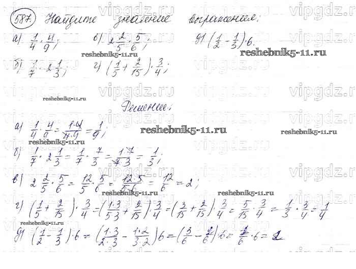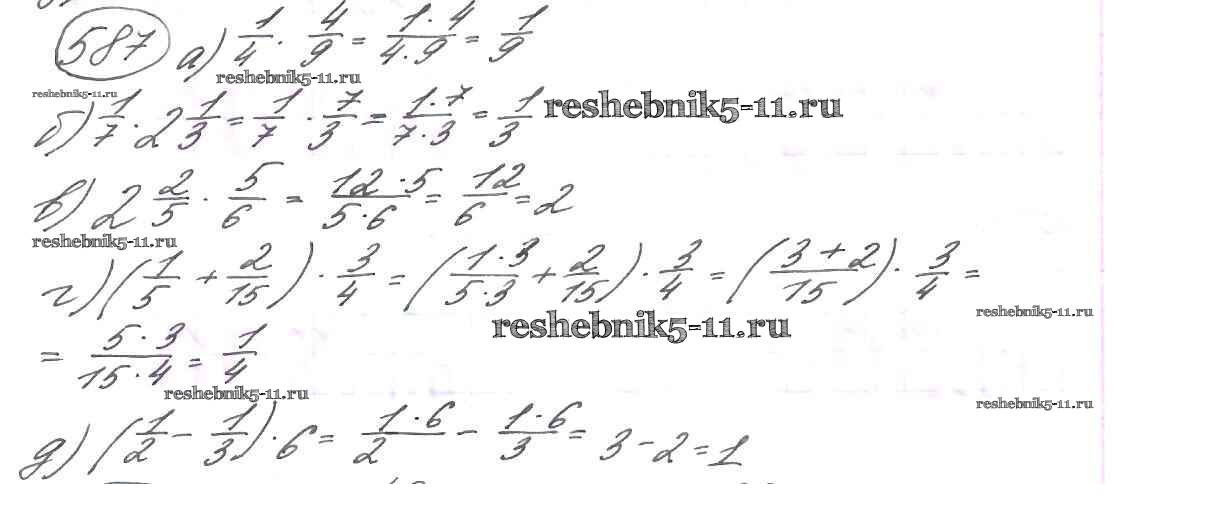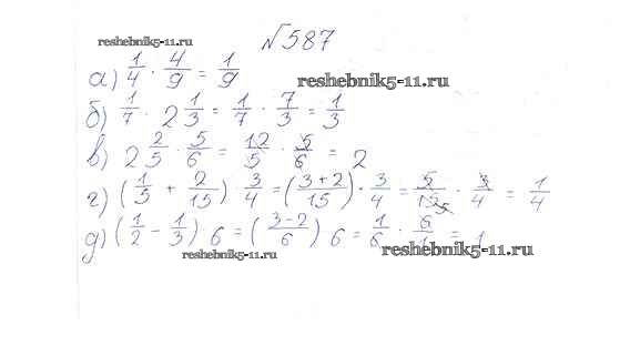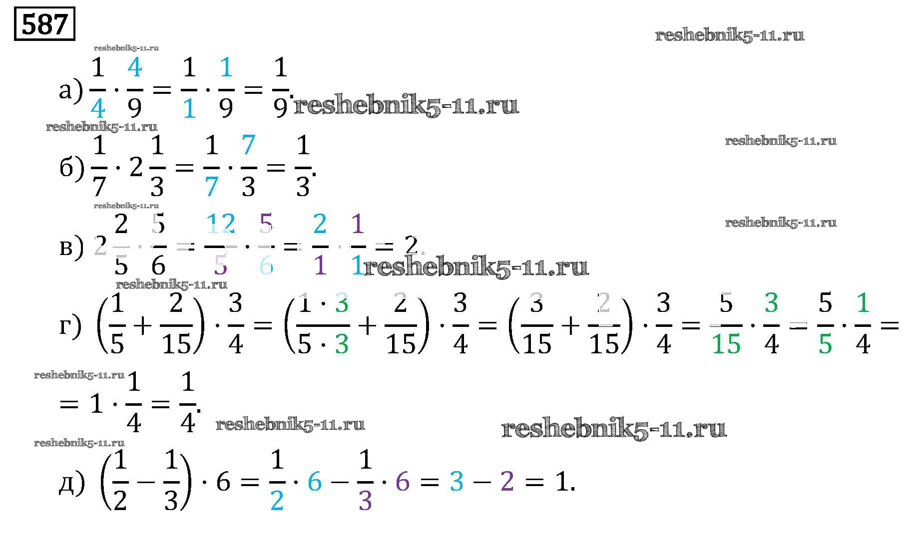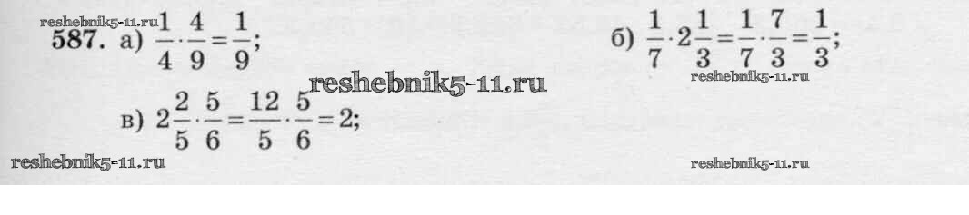 Готовая домашняя работа с ответами по Математике за 6 класс Виленкин, Жохов, Чесноков, Шварцбурд Учебник Мнемозина 2014 ФГОС - §3. Умножение и деление обыкновенных дробей 587