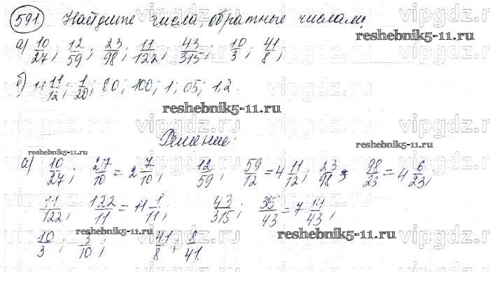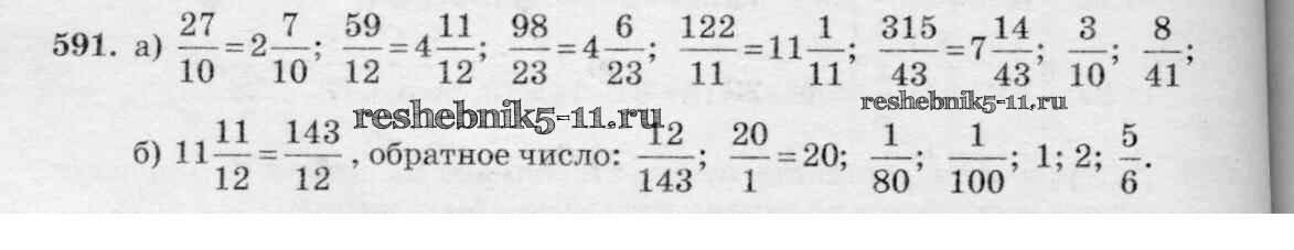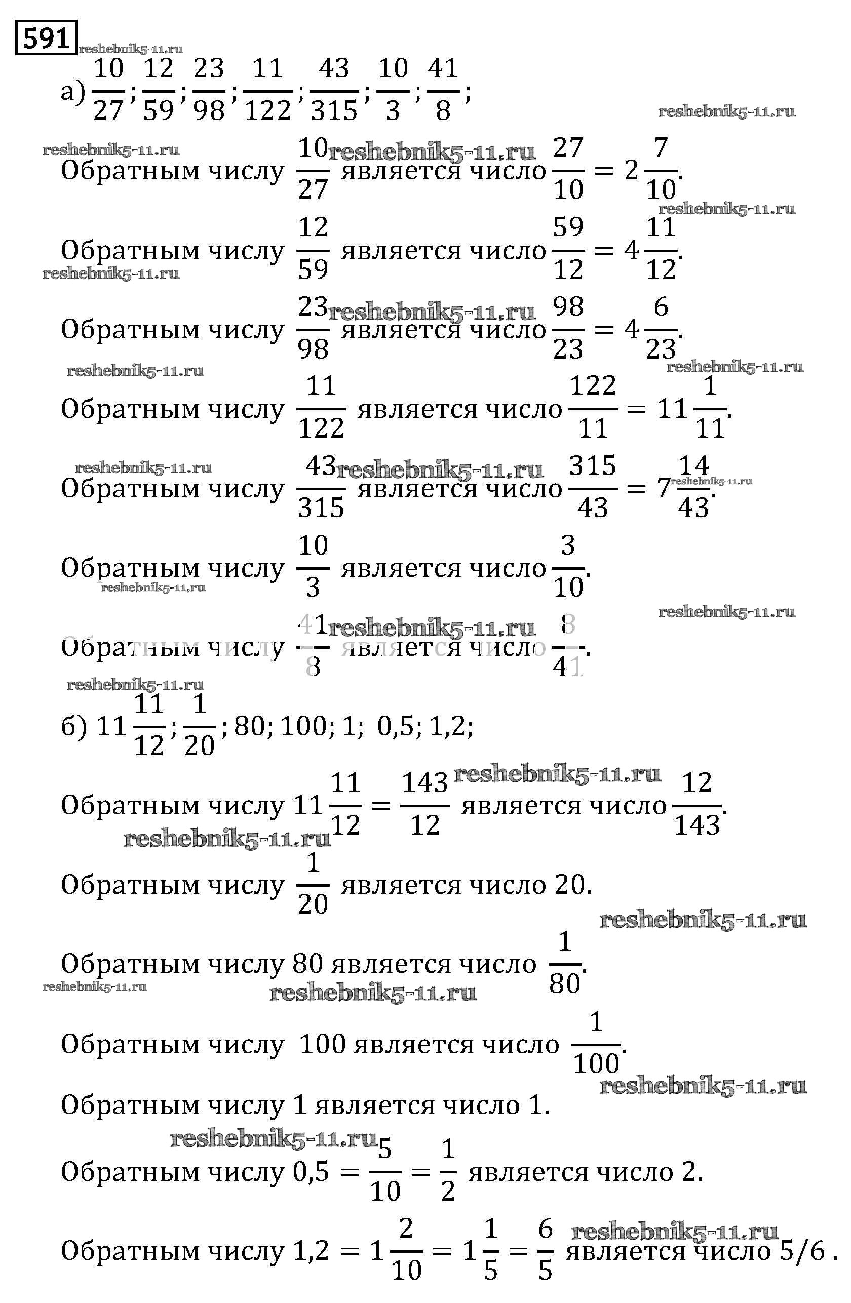 Готовая домашняя работа с ответами по Математике за 6 класс Виленкин, Жохов, Чесноков, Шварцбурд Учебник Мнемозина 2014 ФГОС - §3. Умножение и деление обыкновенных дробей 591