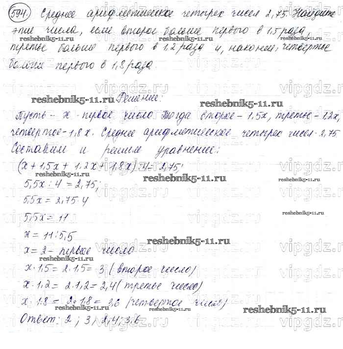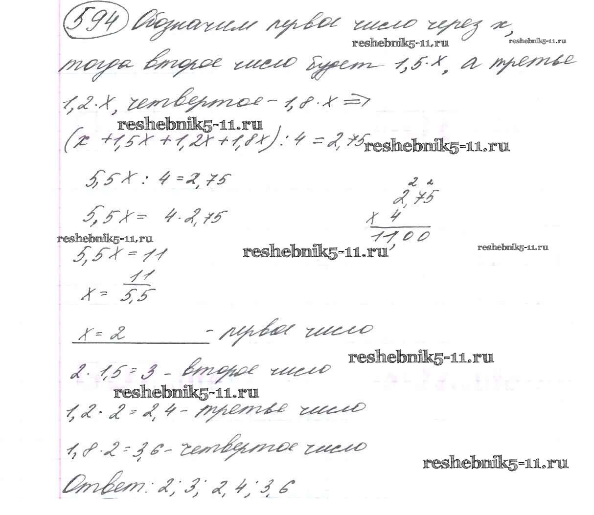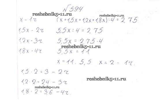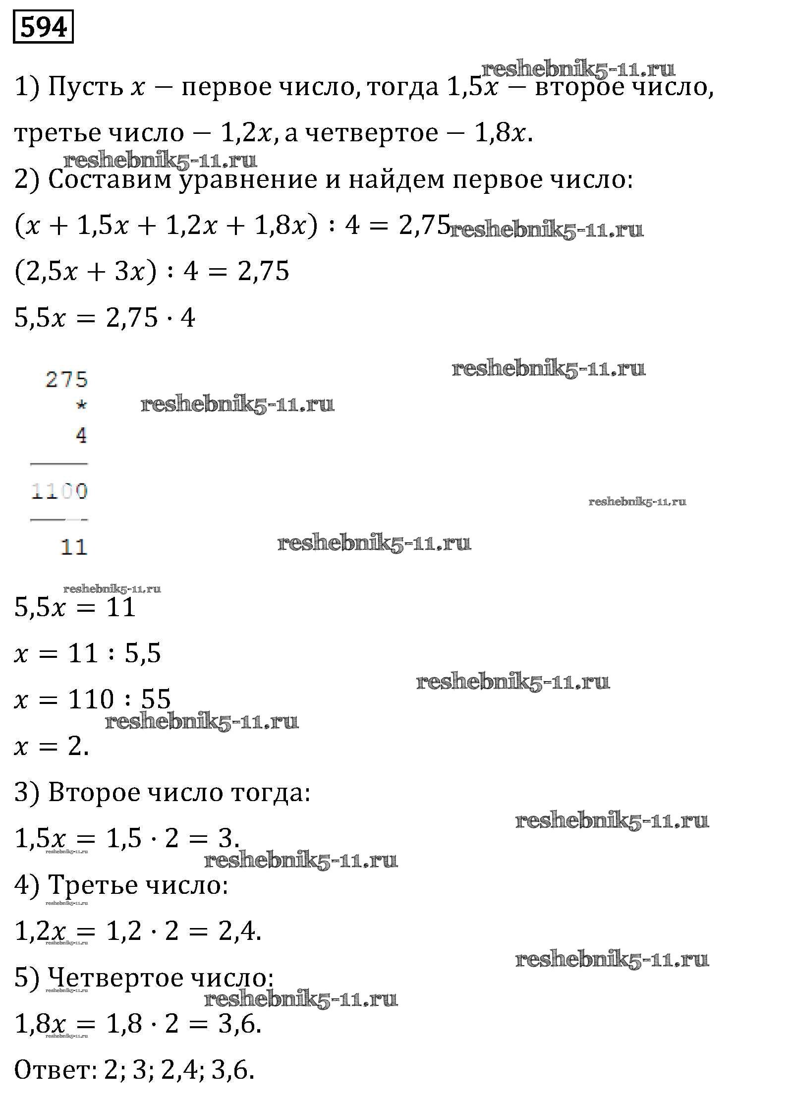 Готовая домашняя работа с ответами по Математике за 6 класс Виленкин, Жохов, Чесноков, Шварцбурд Учебник Мнемозина 2014 ФГОС - §3. Умножение и деление обыкновенных дробей 594
