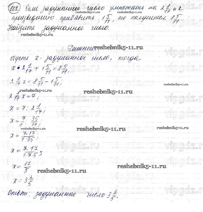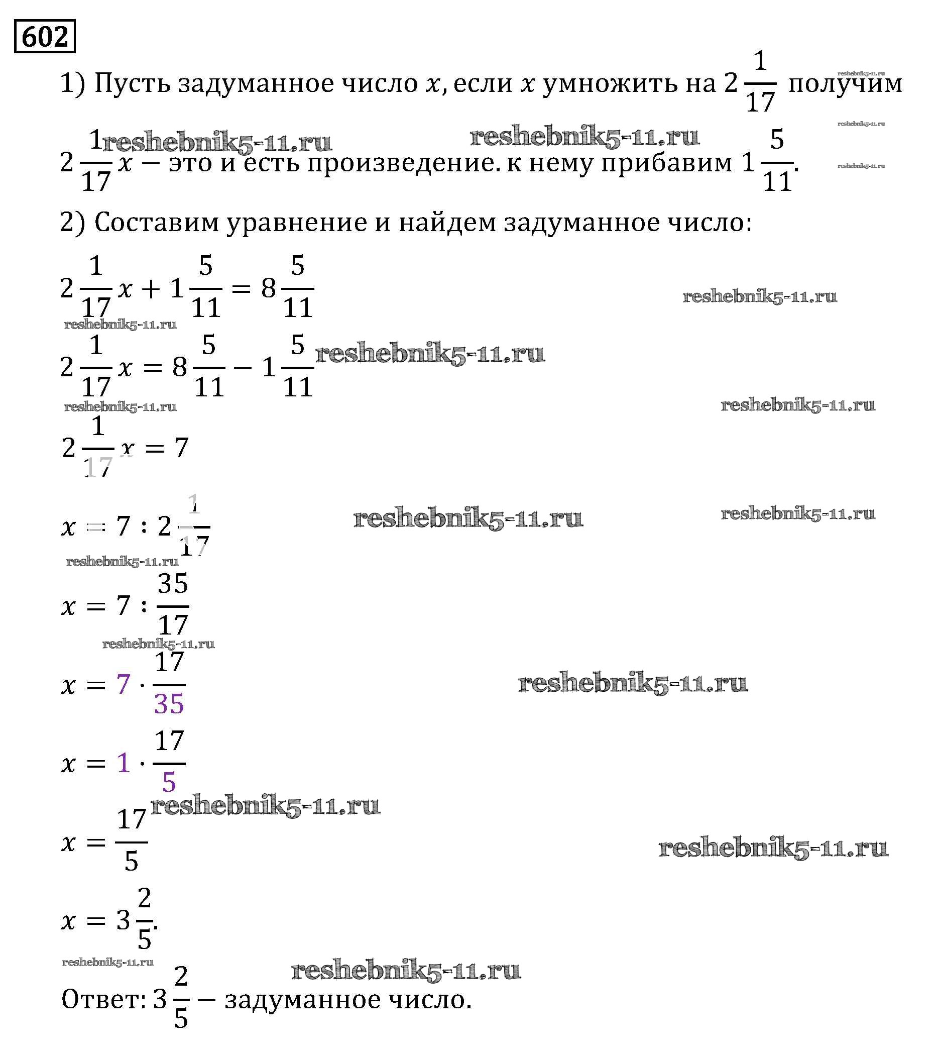 Готовая домашняя работа с ответами по Математике за 6 класс Виленкин, Жохов, Чесноков, Шварцбурд Учебник Мнемозина 2014 ФГОС - §3. Умножение и деление обыкновенных дробей 602