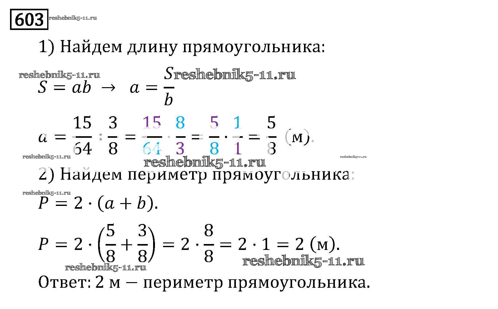 Готовая домашняя работа с ответами по Математике за 6 класс Виленкин, Жохов, Чесноков, Шварцбурд Учебник Мнемозина 2014 ФГОС - §3. Умножение и деление обыкновенных дробей 603