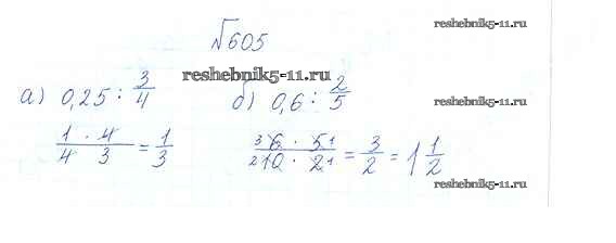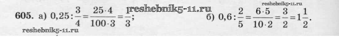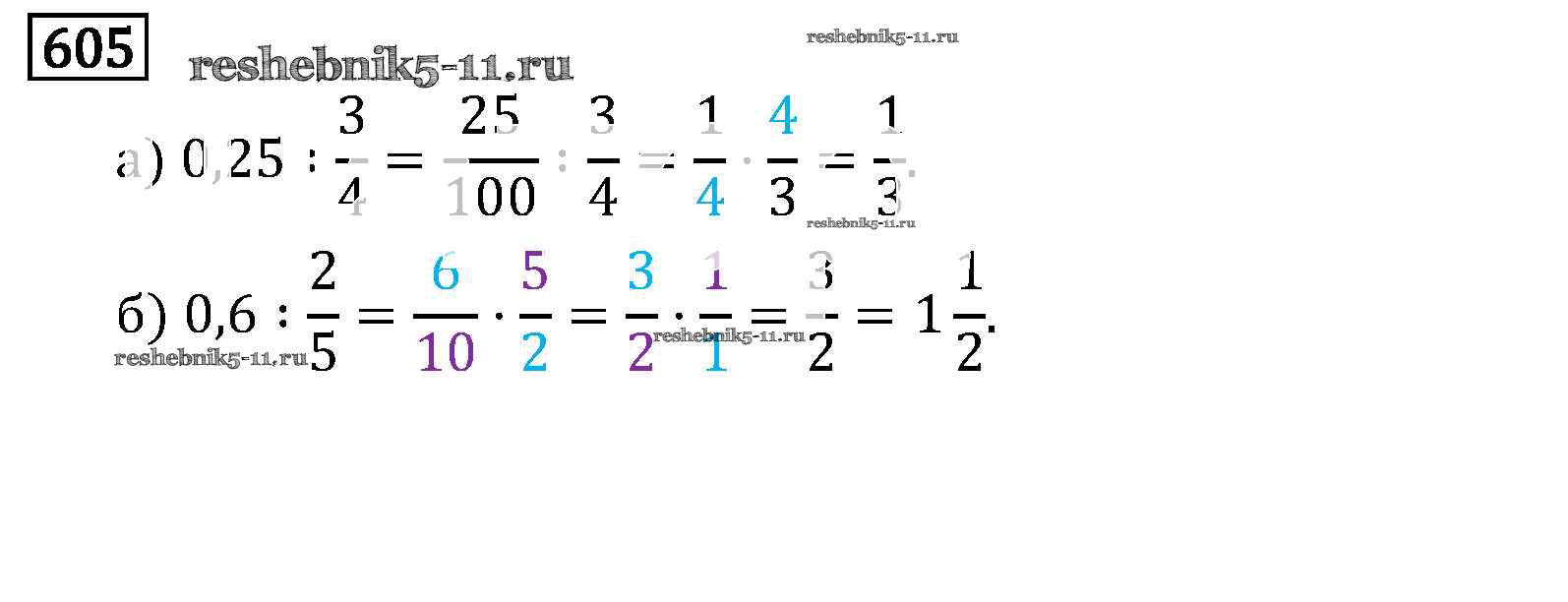 Готовая домашняя работа с ответами по Математике за 6 класс Виленкин, Жохов, Чесноков, Шварцбурд Учебник Мнемозина 2014 ФГОС - §3. Умножение и деление обыкновенных дробей 605