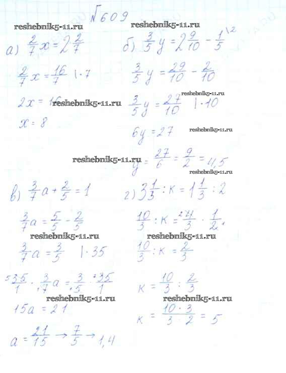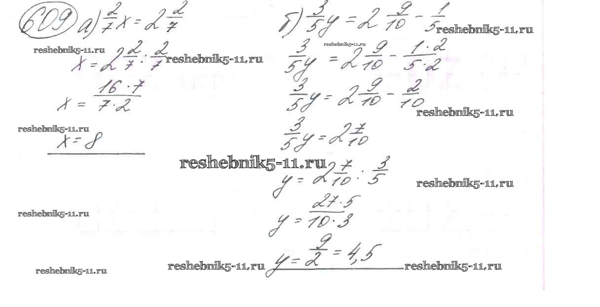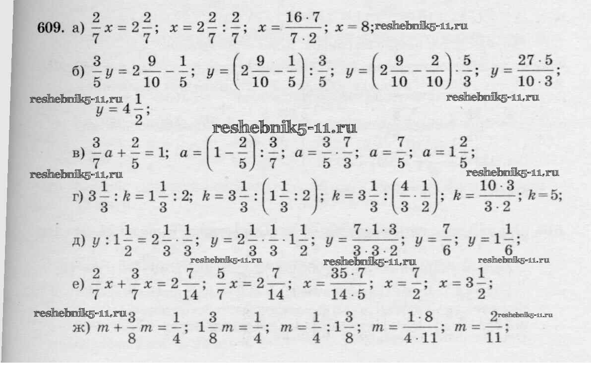 Готовая домашняя работа с ответами по Математике за 6 класс Виленкин, Жохов, Чесноков, Шварцбурд Учебник Мнемозина 2014 ФГОС - §3. Умножение и деление обыкновенных дробей 609